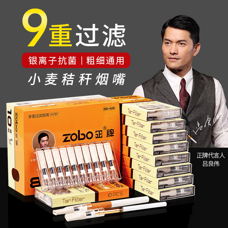 zobo正牌一次性烟嘴男士香烟过滤嘴小麦秸秆12重粗中细三用过滤器