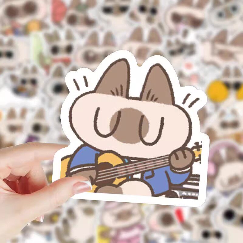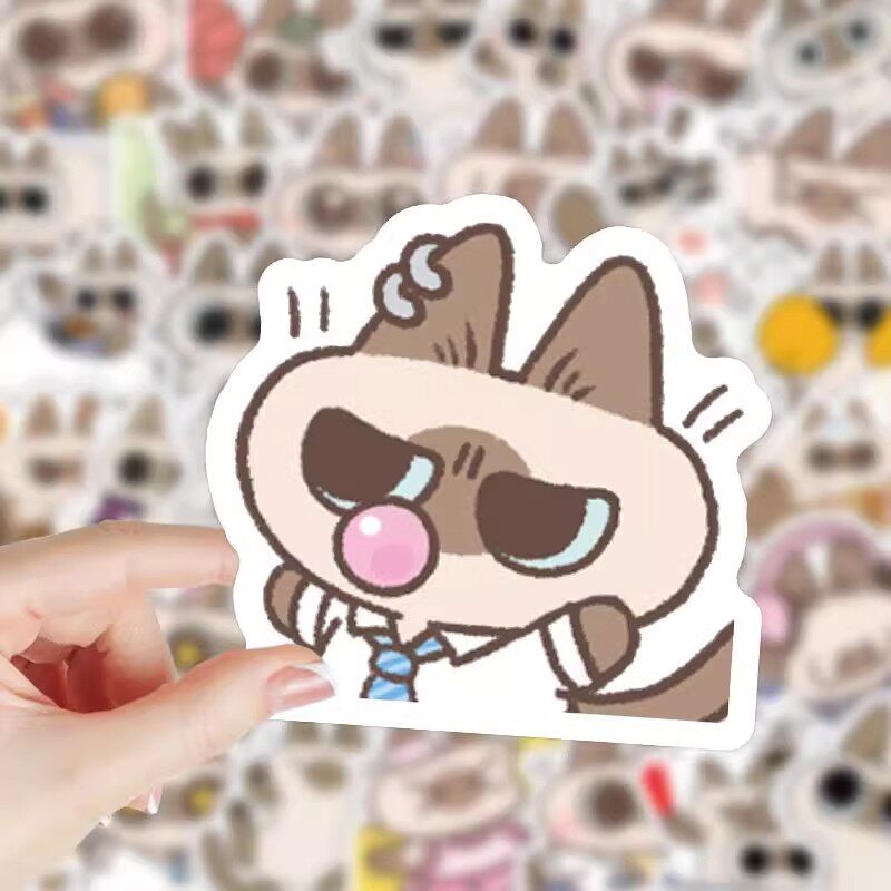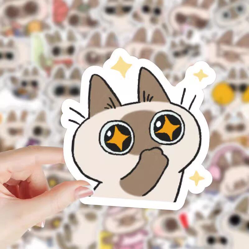 208张卡通可爱小豆泥暹罗猫表情包贴纸趣味猫猫手账装饰贴画防水