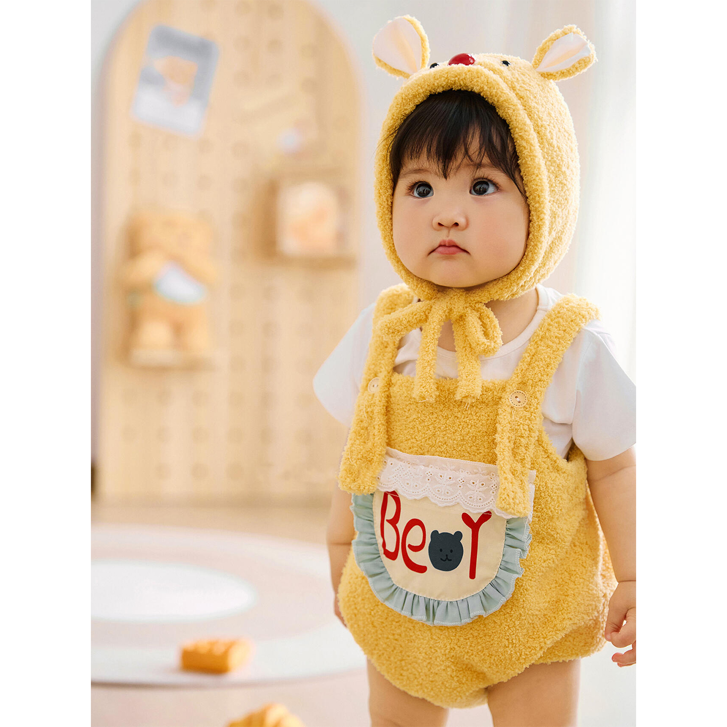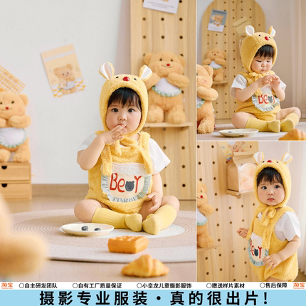 周岁照儿童摄影服装黄油小熊主题影楼拍照道具男女宝宝写真百天照