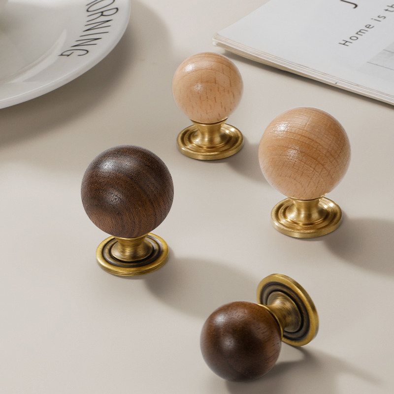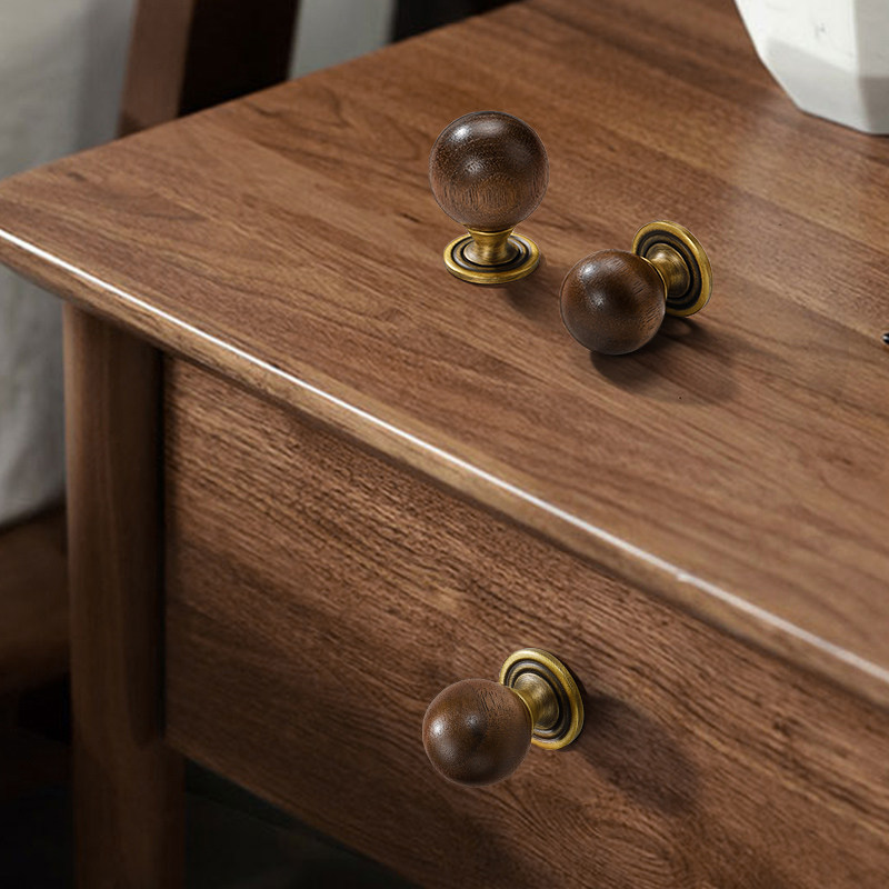 胡桃木拉手中古风衣柜衣橱柜门抽屉家具单孔复古圆球新中式小把手