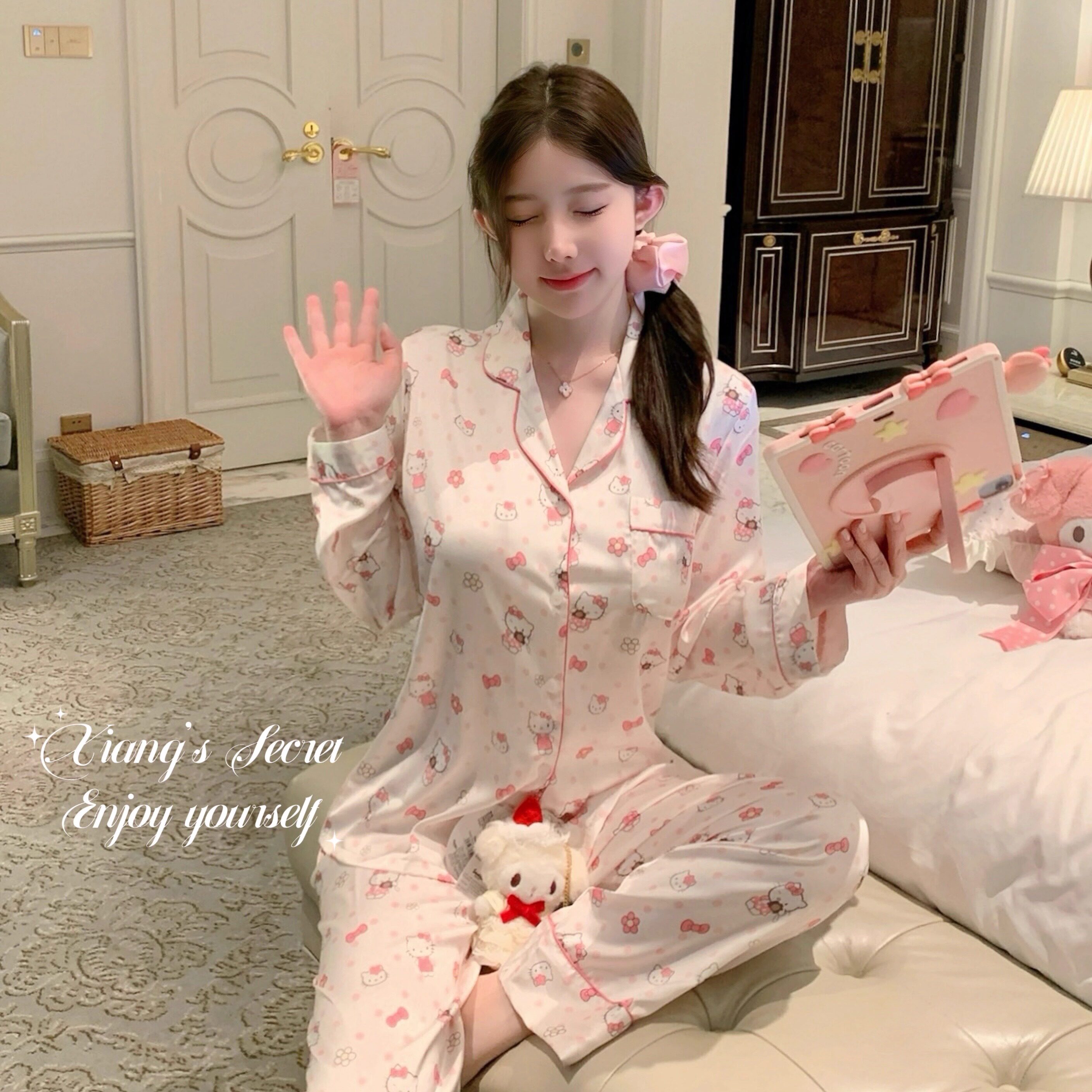 香香的秘密 春日花花kitty*冰丝睡衣春夏缎面可爱纯欲家居服25新