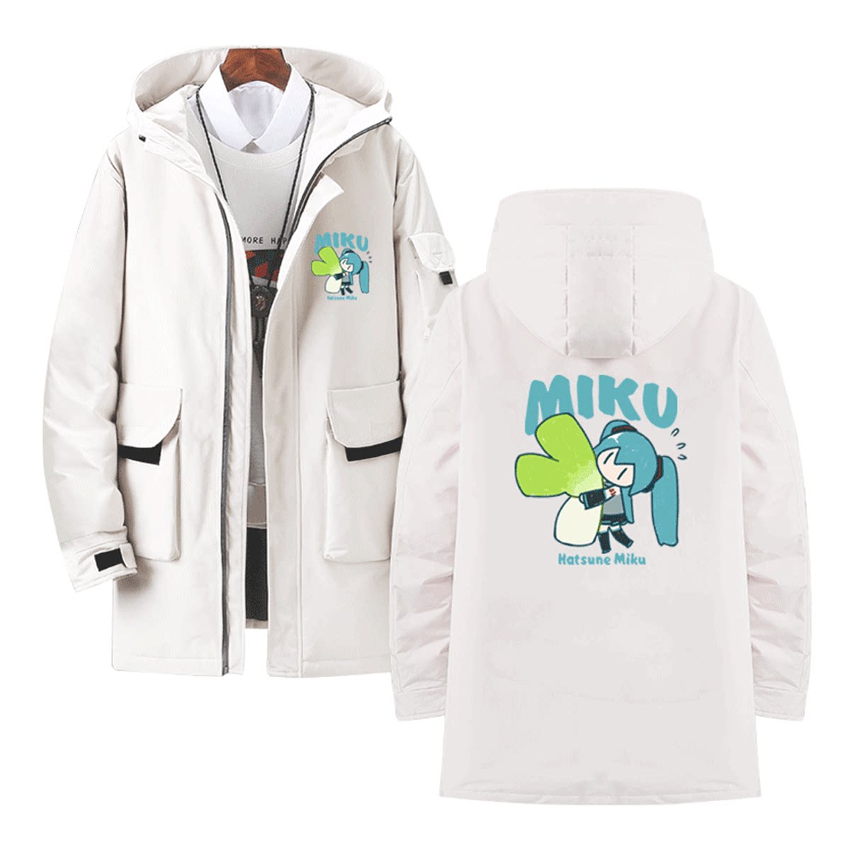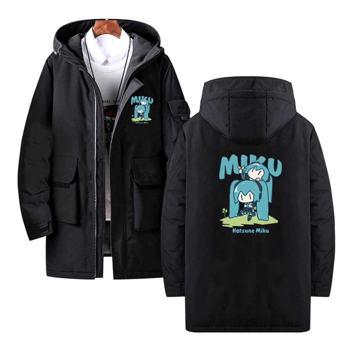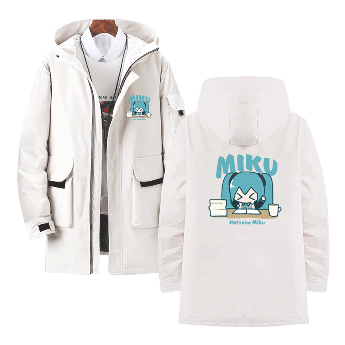 初音MIKU未来周边cos二次元可定制男女情侣休闲中长款外套羽绒服