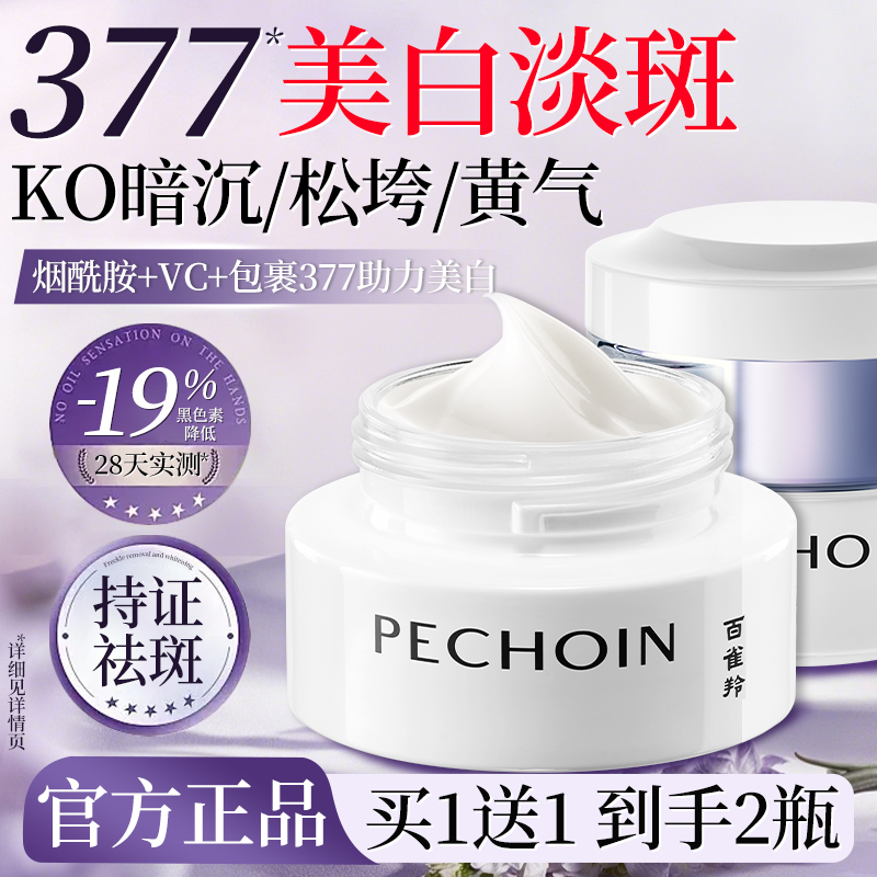 百雀羚至臻皙白2.0面霜377美白祛斑霜淡斑紧致抗皱官方旗舰店正品