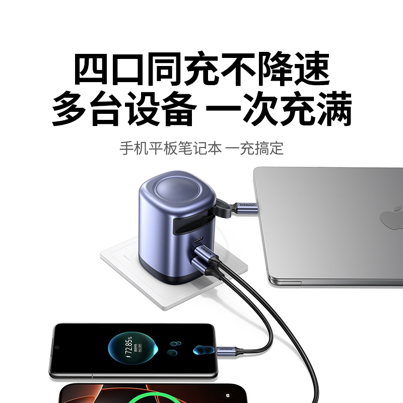 绿联100W伸缩线充电器多口PD快充头适用苹果小米17pro华为Macbookair笔记本电脑手机抽拉线65W氮化镓充电插头
