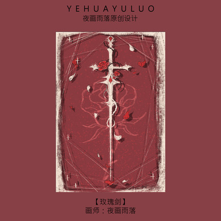 「玫瑰剑」磨砂满天星夜画雨落插画卡片原创明信片礼物贺卡