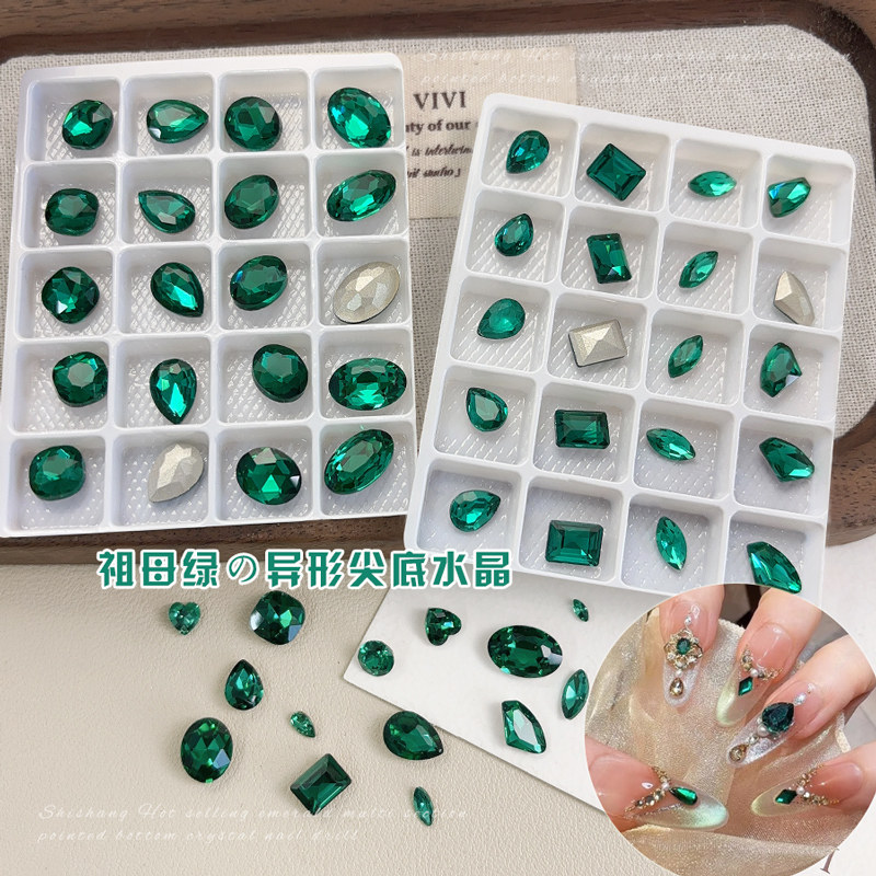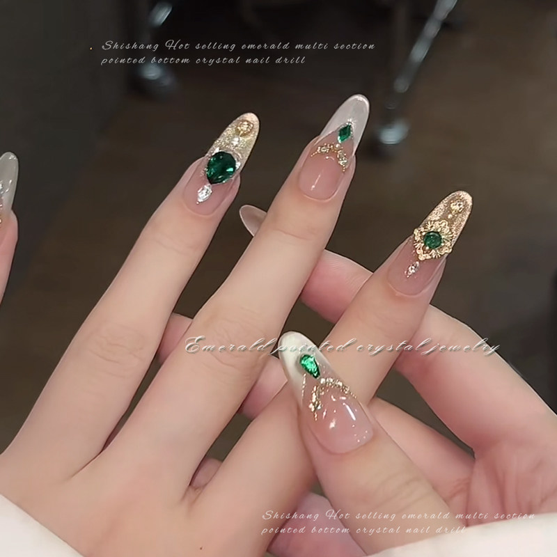 祖母绿美甲饰品水滴爱心鸽子蛋