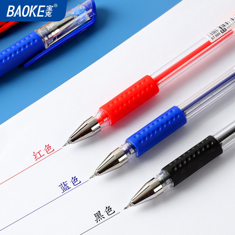 宝克(BAOKE) ST880中性笔经典复刻新款ST尖锥笔头顺滑不易漏墨黑色0.5mm学生书写蓝色红色老师改试卷速干水笔