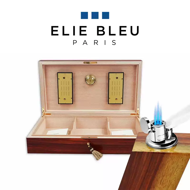 法国ELIE BLEU红花梨110支装雪松木雪茄保湿盒台式雪茄打火机