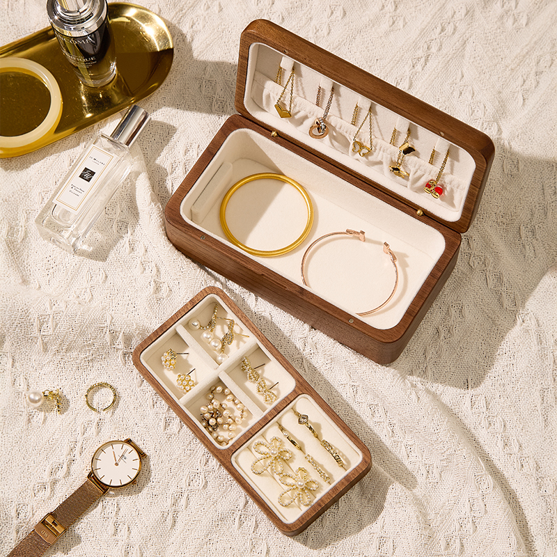 实木首饰盒双层黑胡桃木桌面大容量收纳高档精致首饰珠宝盒