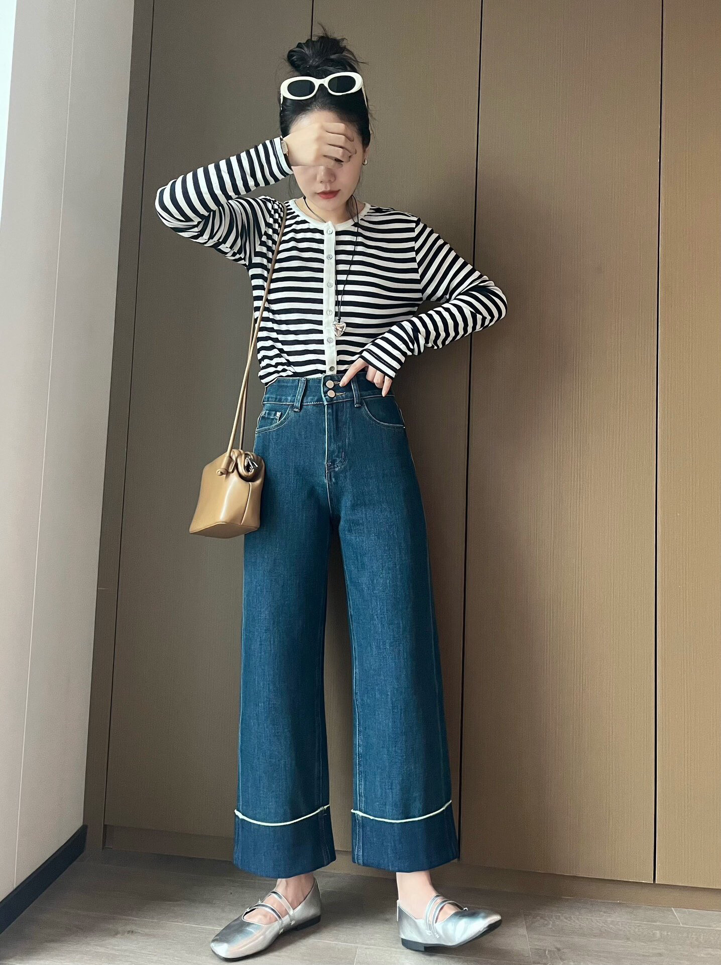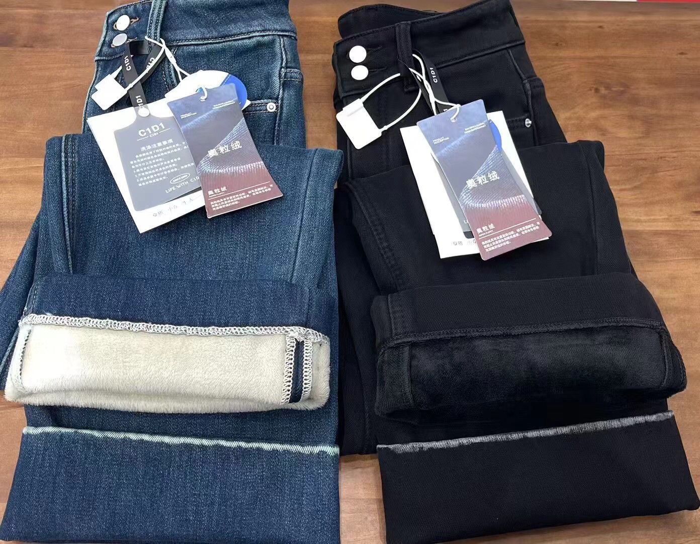 遮肉肉~翻边直筒牛仔裤女 加绒加厚高腰宽松显瘦小个子阔腿裤9分