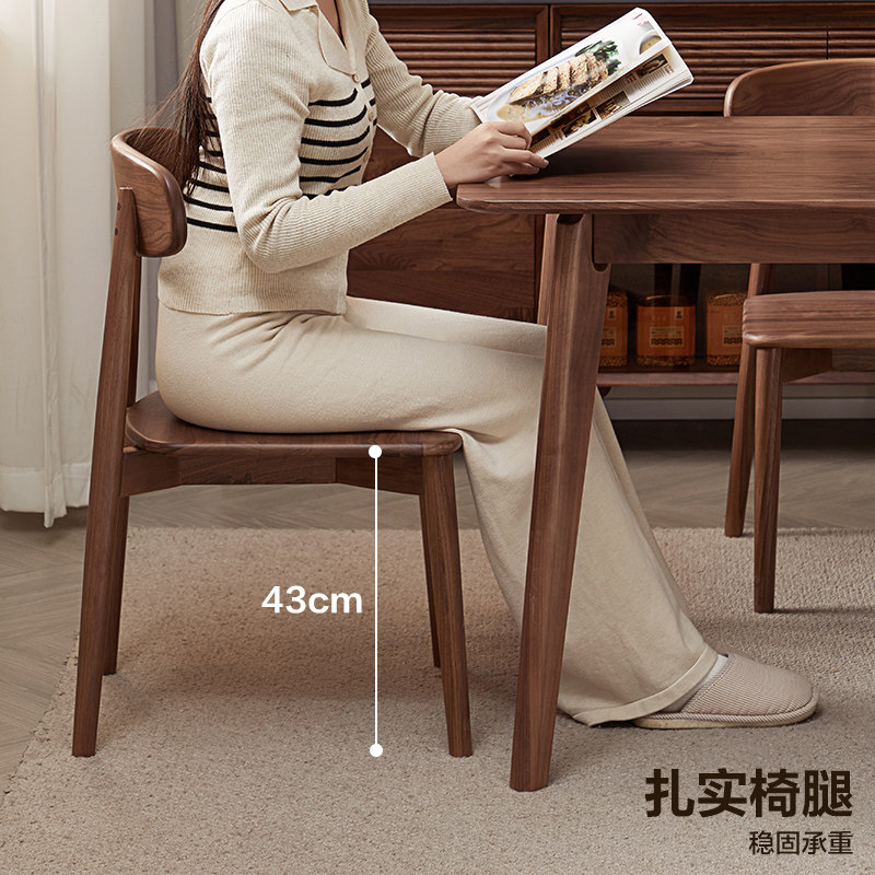 全友家居黑胡桃木实木餐椅客厅家用怀抱椅书房靠背书椅阅读办公椅