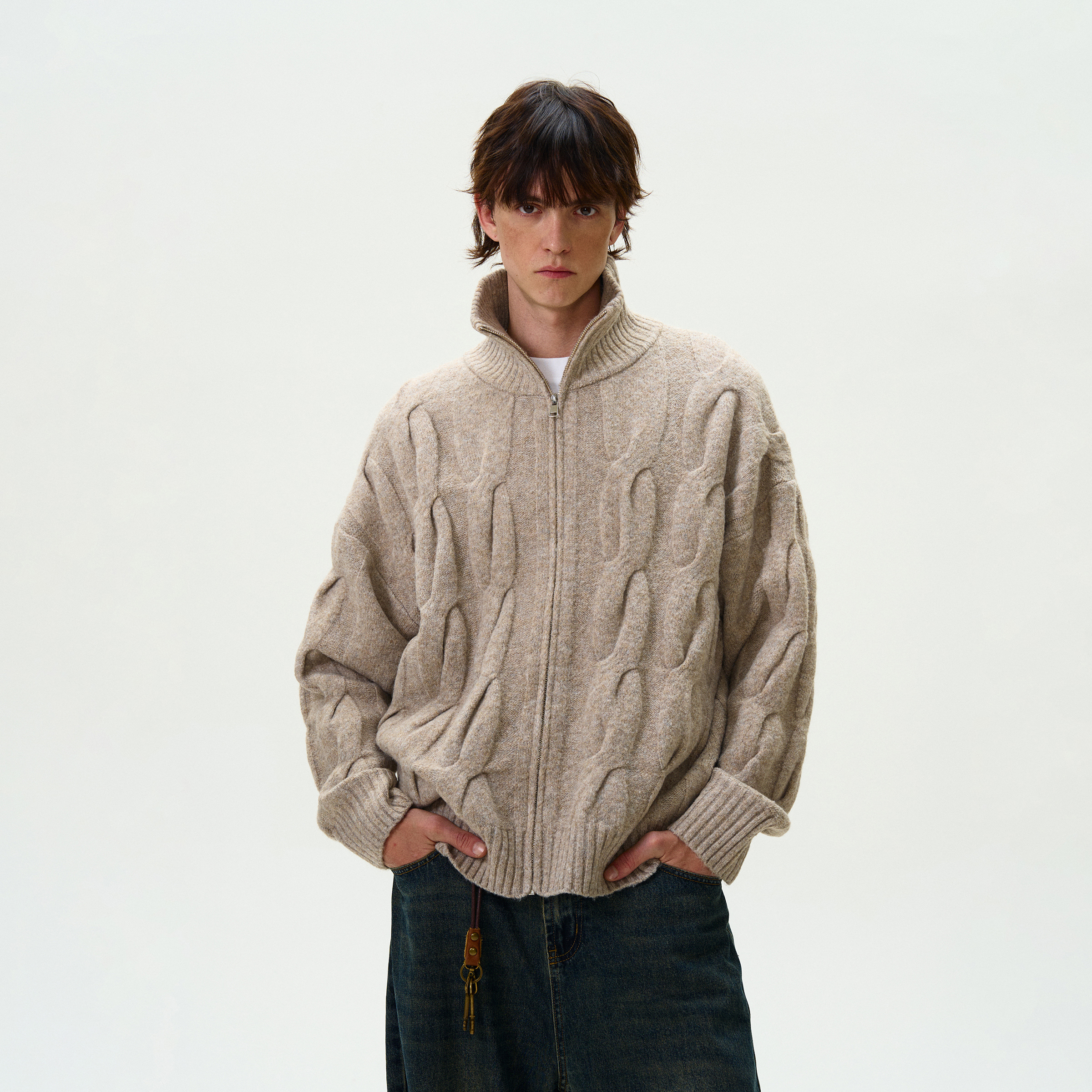 MADWITCH高领麻花纹针织衫毛衣男女宽松休闲高级感加厚情侣外套潮