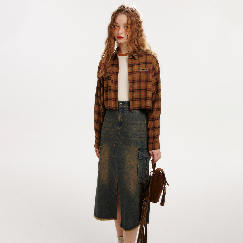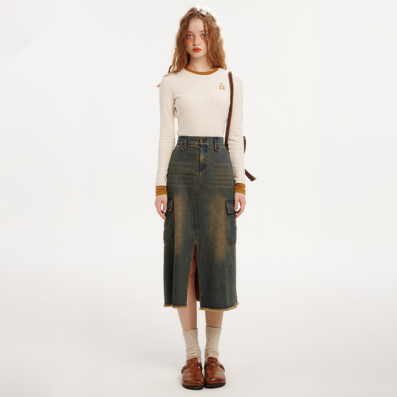TAKEANAP午睡 复古牛仔半身裙女2024新款开衩工装裙小个子