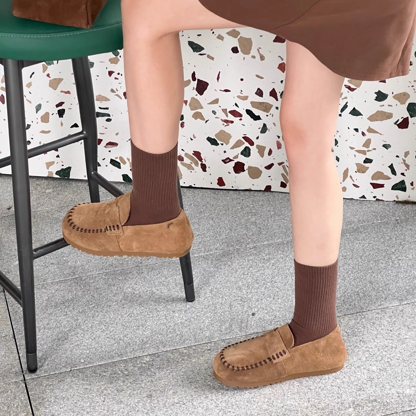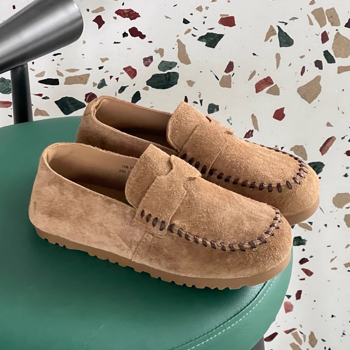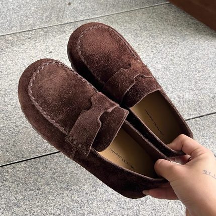 2025秋季新款真皮复古平底乐福鞋女百搭休闲豆豆鞋韩版时髦单鞋女