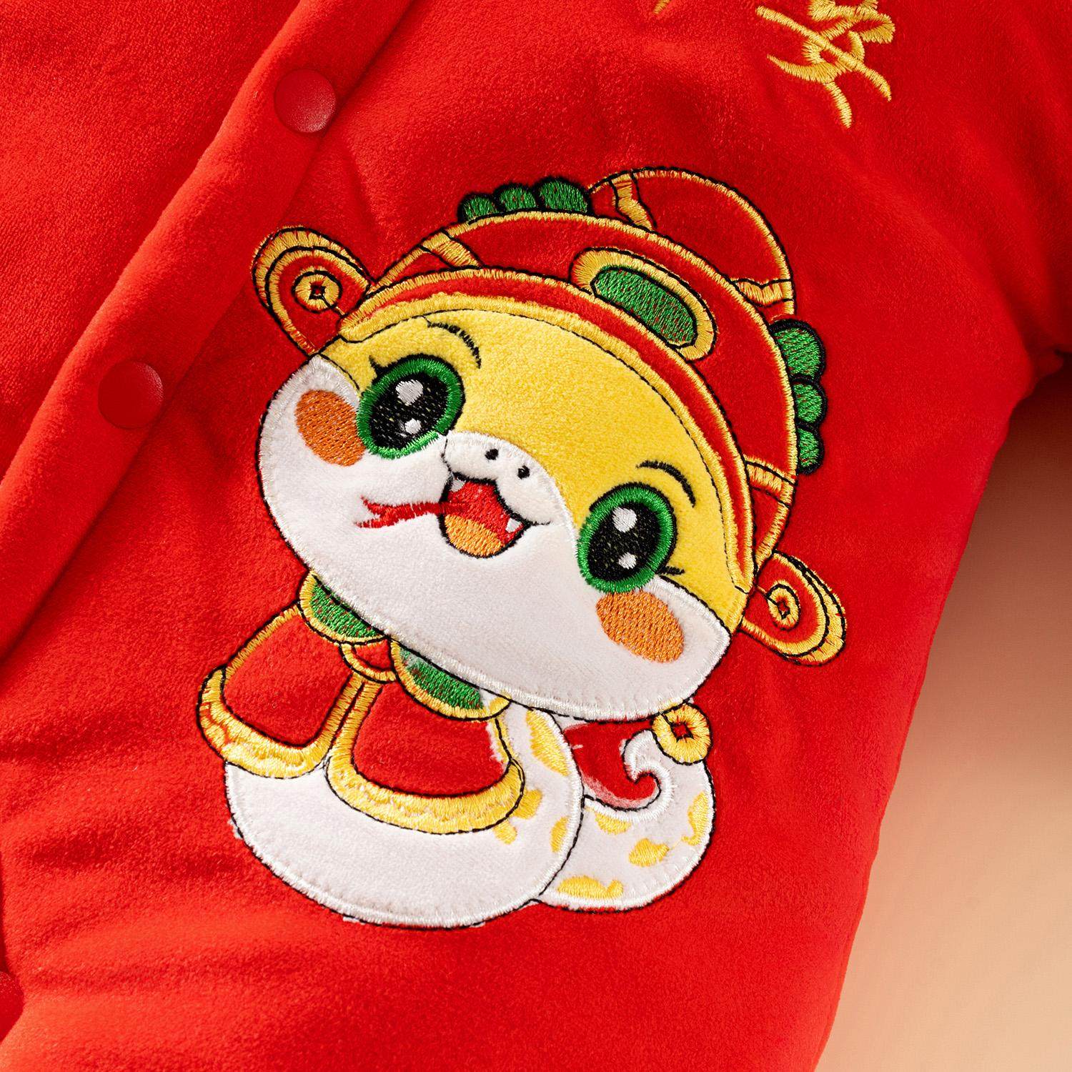 蛇年婴儿连体衣红色纯棉秋冬加厚