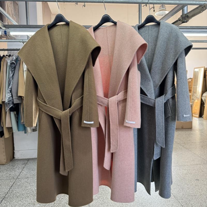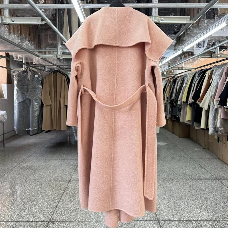 大翻领双面羊毛大衣女中长款秋冬季新款韩版宽松系带气质毛呢外套