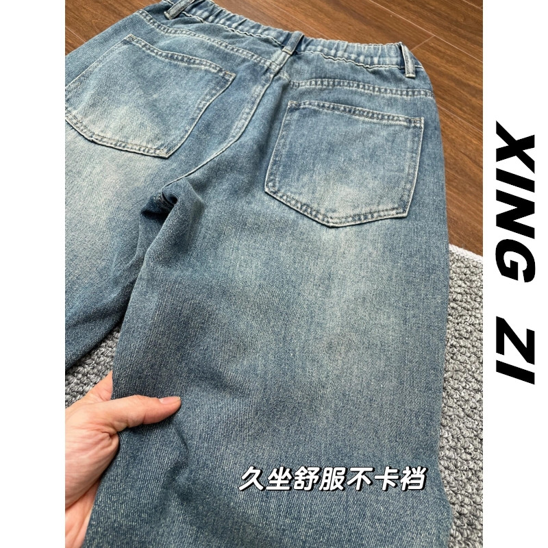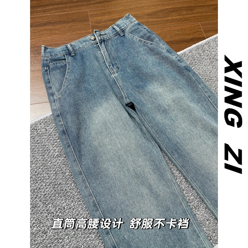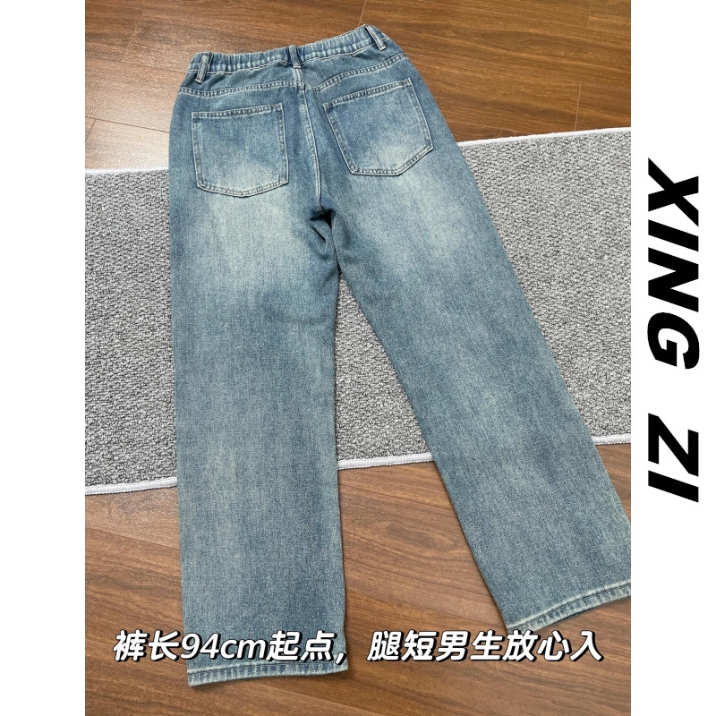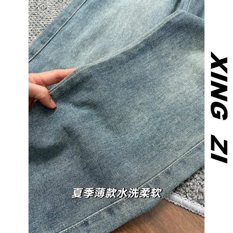 夏季牛仔裤男直筒宽松显瘦美式复古潮流休闲百搭小个子九分裤显高
