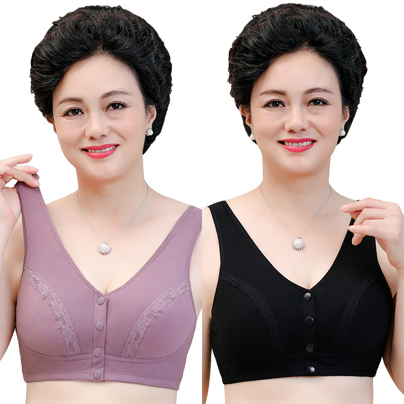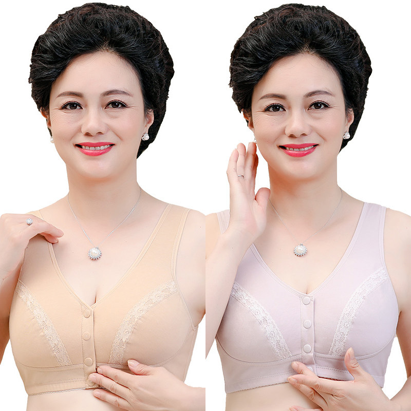 妈妈内衣文胸无钢圈前扣大码背心式老人胸罩纯棉薄款中老年文胸女