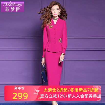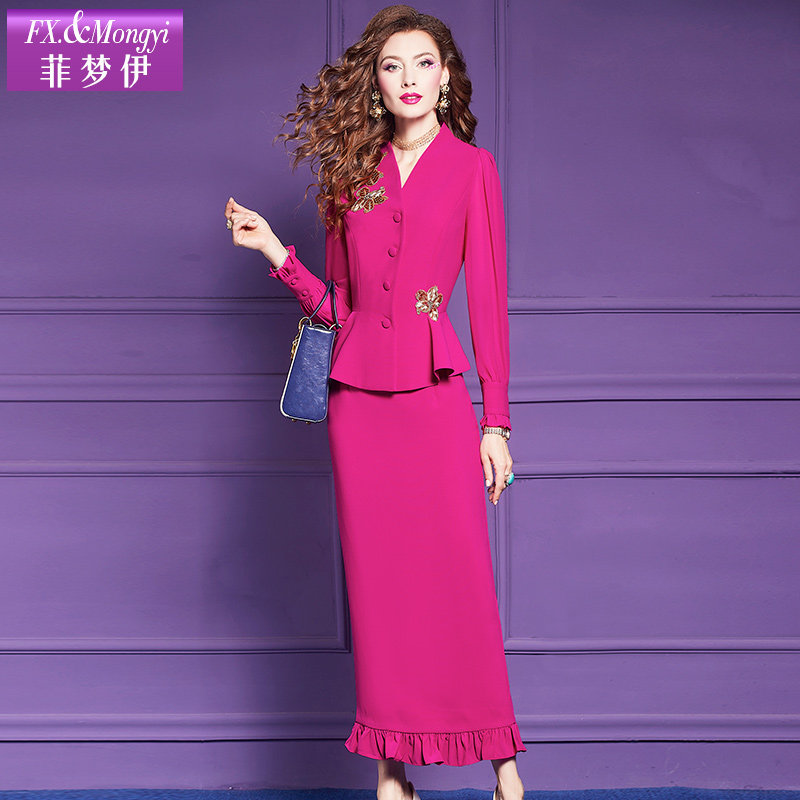 菲梦伊轻熟高级感时尚套装女秋季荷叶边收腰气质上衣包臀鱼尾半裙
