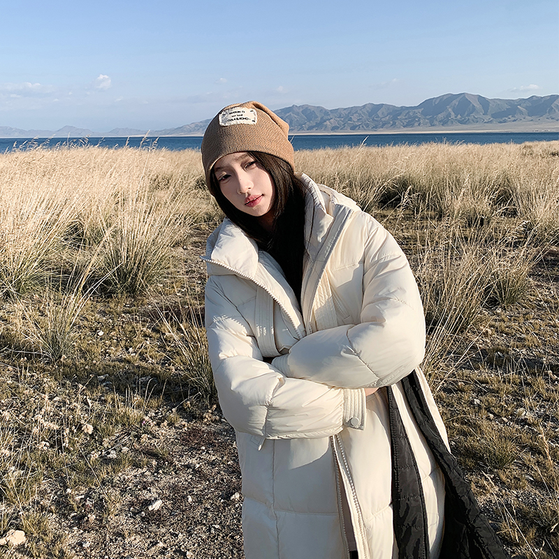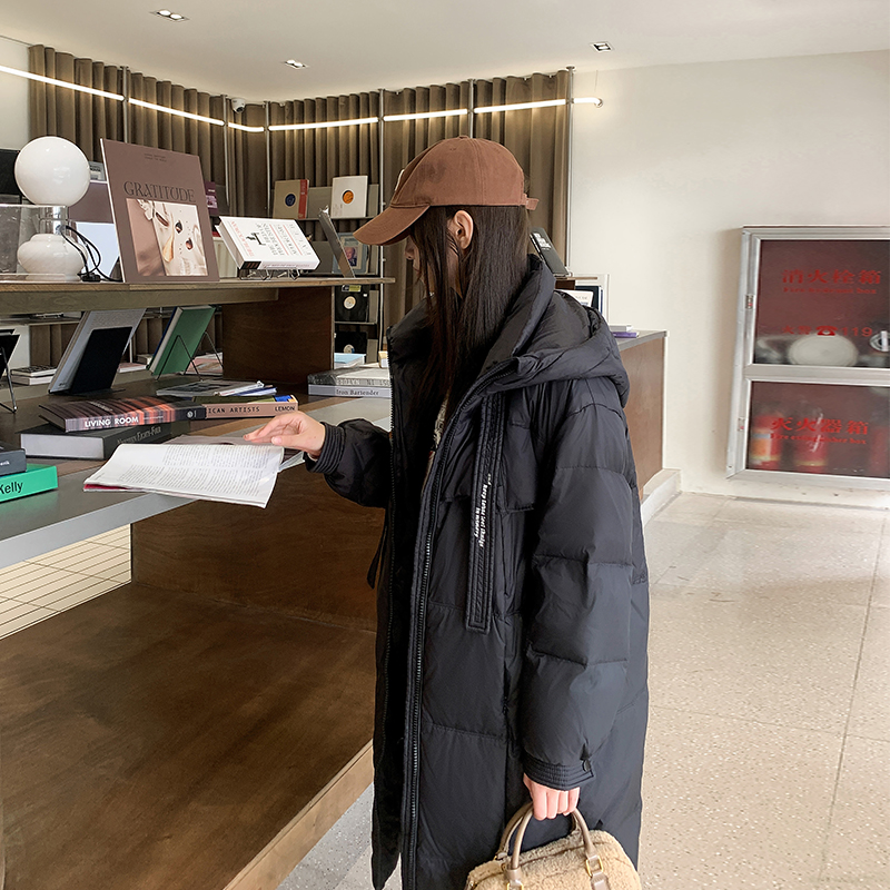 2025冬新款时尚美衣千百惠连帽羽绒服女中长款加厚保暖白鸭绒外套