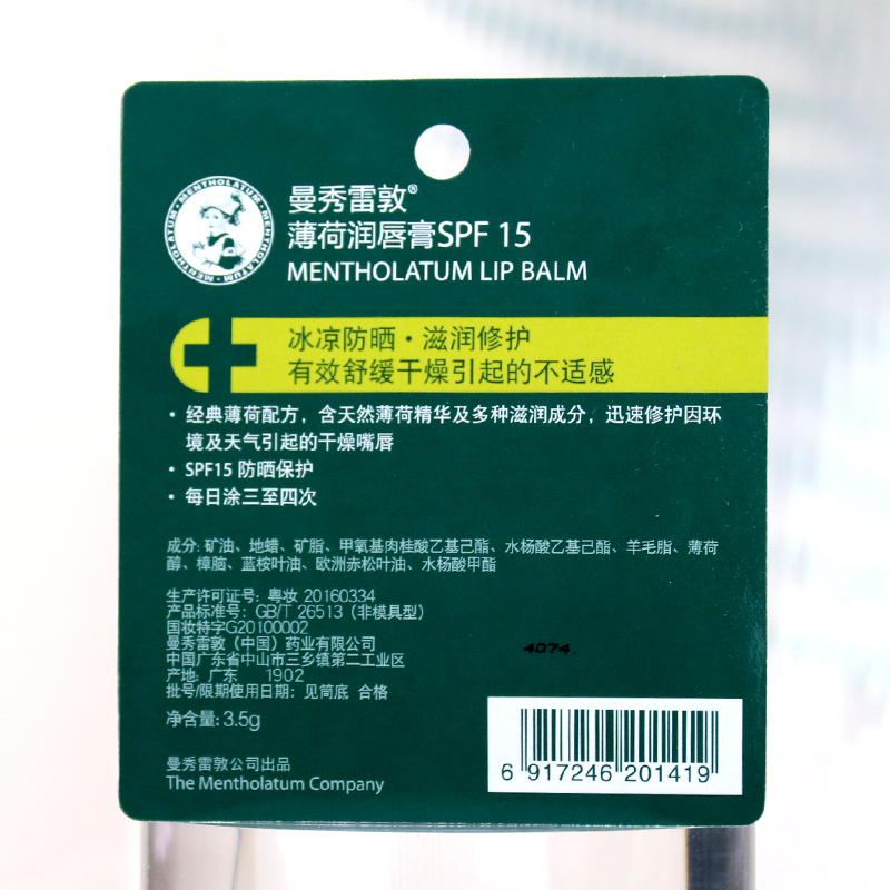 曼秀雷敦薄荷润唇膏无色保湿滋润男女学生口红户外防晒专用秋冬季