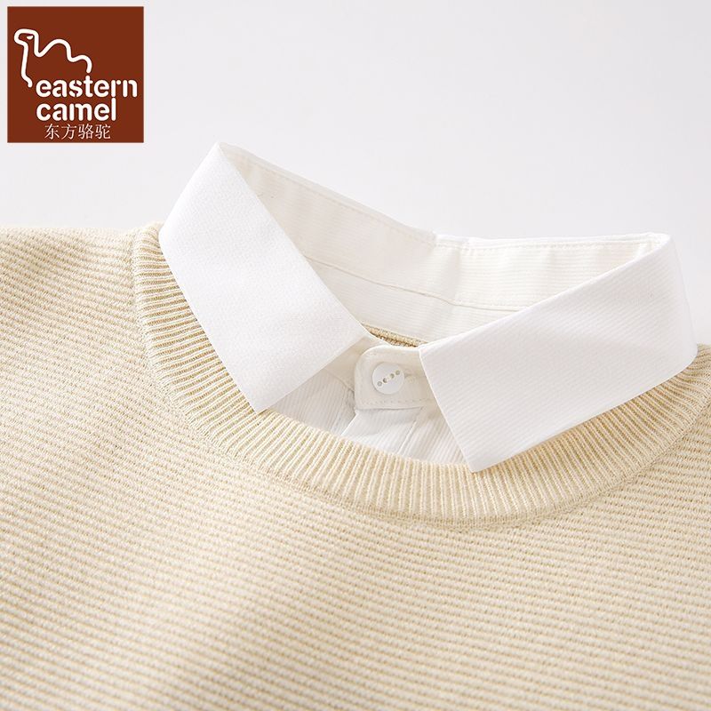 东方骆驼高端加绒假两件针织衫男秋冬季衬衫领毛衣加厚保暖打底衫