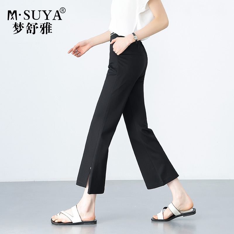 梦舒雅小个子微喇叭裤女2025年夏季新款高腰显瘦弹力百搭九分裤子