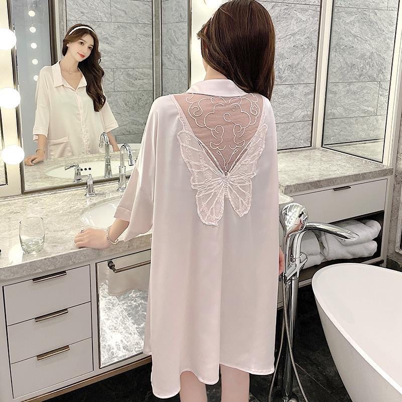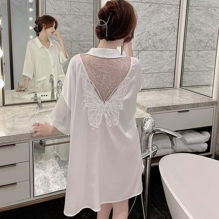 性感纯欲风睡衣女男友风衬衫2025年新款夏季冰丝睡裙薄款家居服