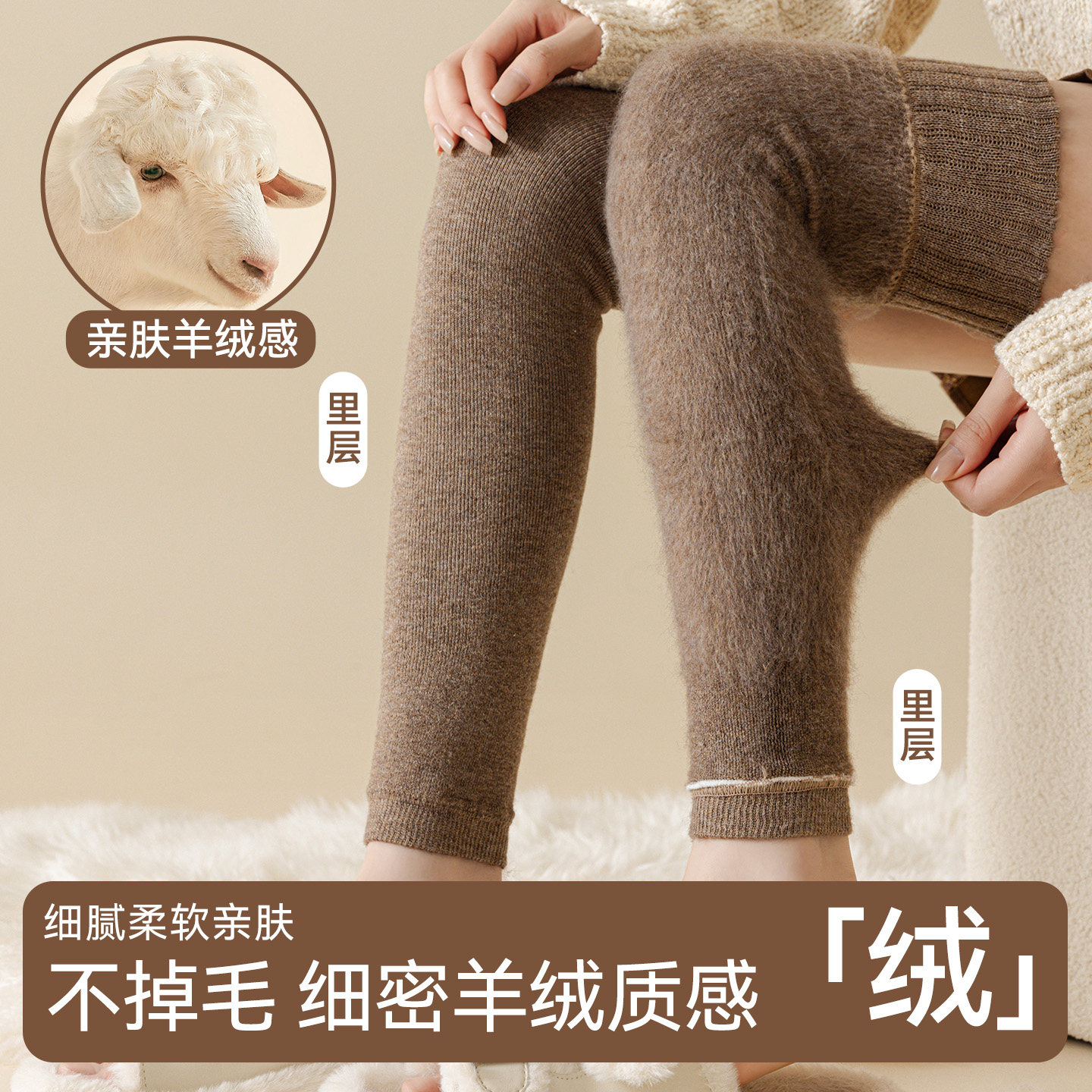 猫人加绒过膝长筒袜子女秋冬款加厚保暖防下滑护膝盖护腿羊绒袜套