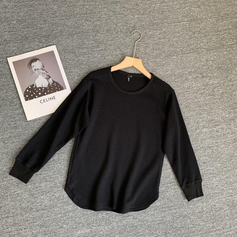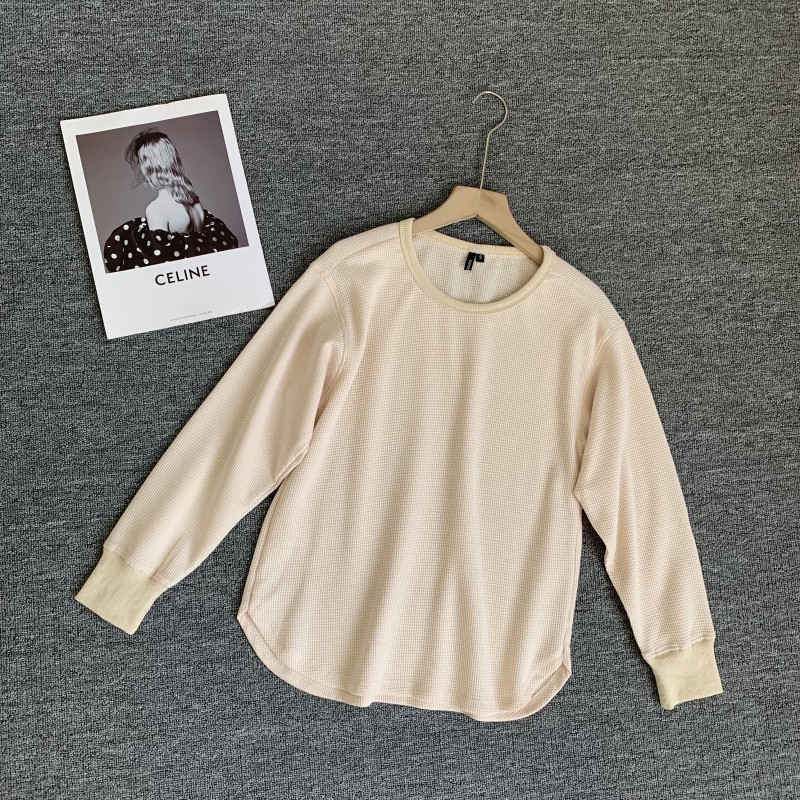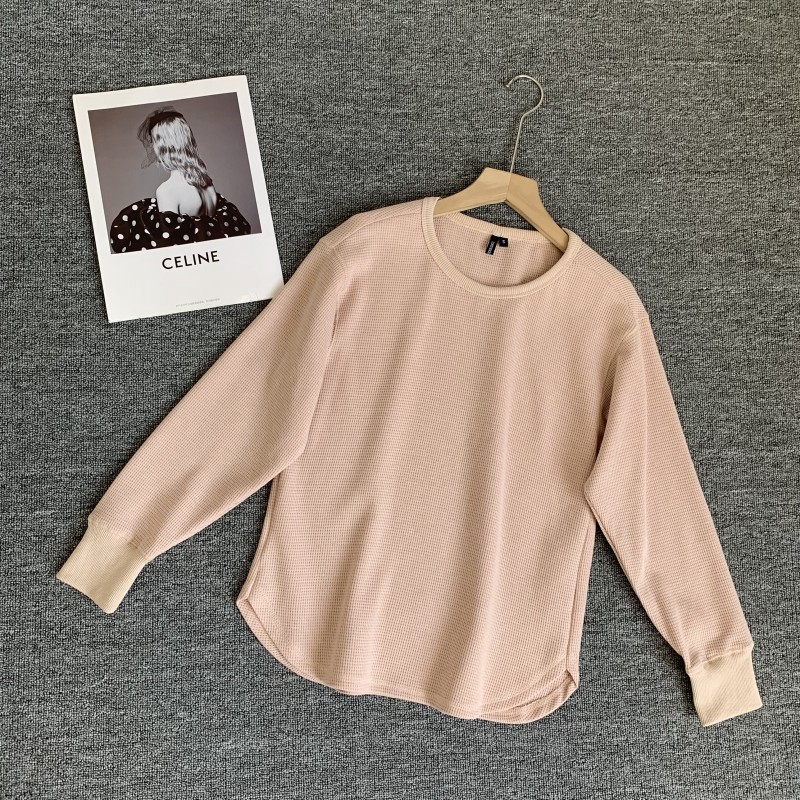 优+日单小码女装春秋新款圆领套头卫衣女春季薄款纯色华夫格上衣