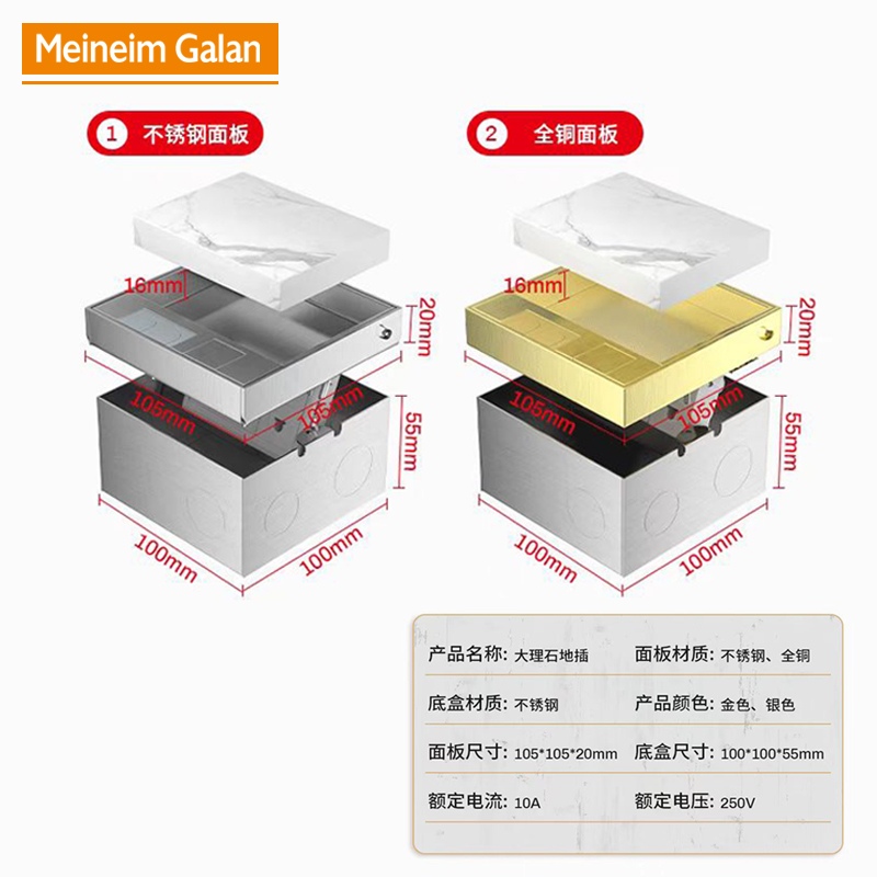 大理石瓷砖地插座隐形纯平不锈钢超薄隐藏式五孔平面地板地面插座