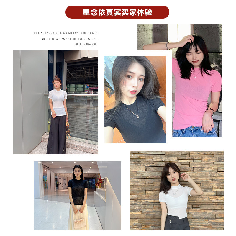 网纱t恤女2025新款短袖超火夏季黑色薄款冰丝上衣微透面膜打底衫