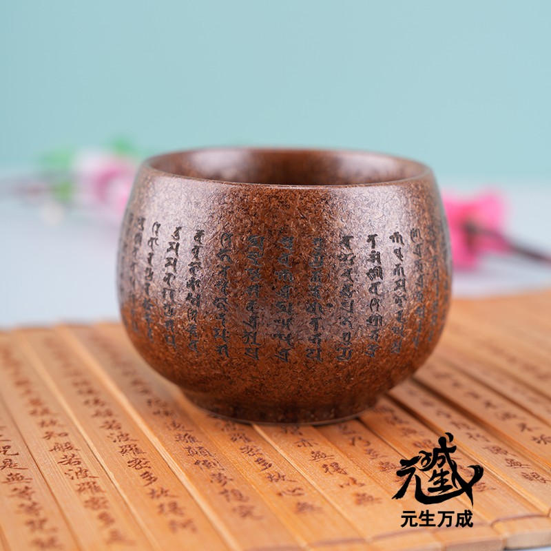 孔雀明王沙金粗陶口杯品茗杯主人杯个人家用功夫茶杯