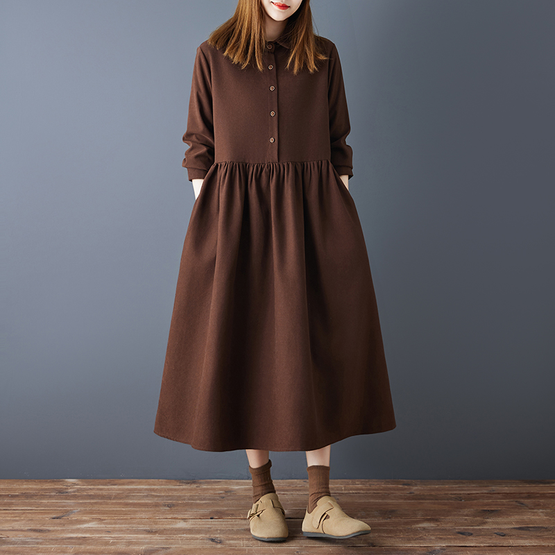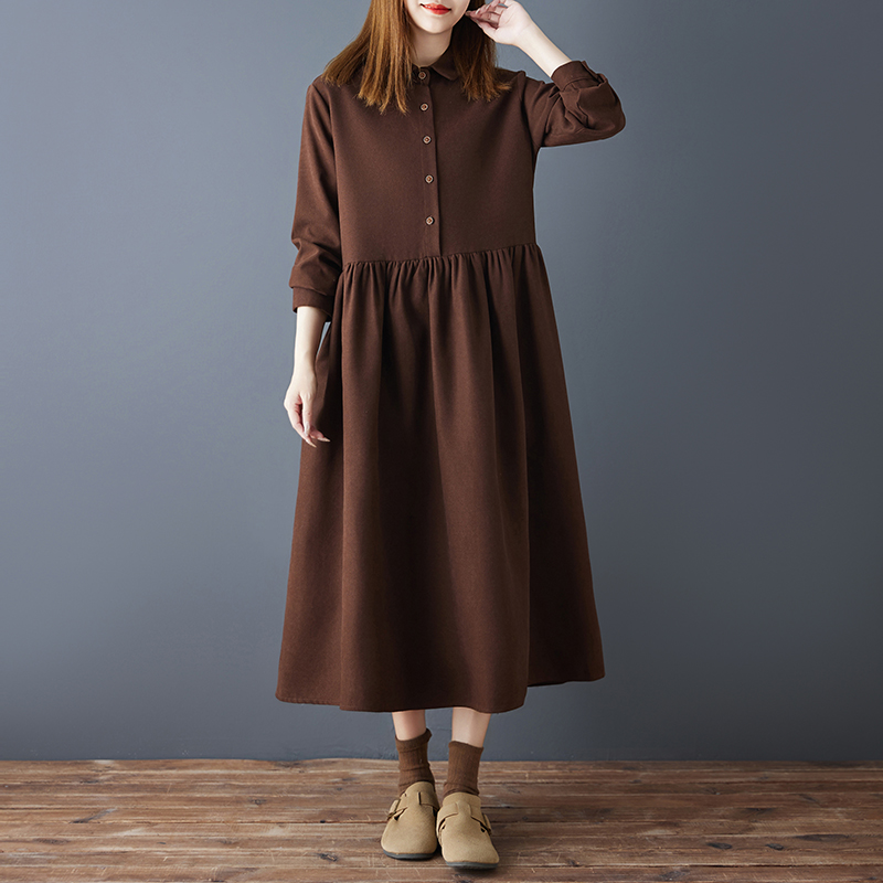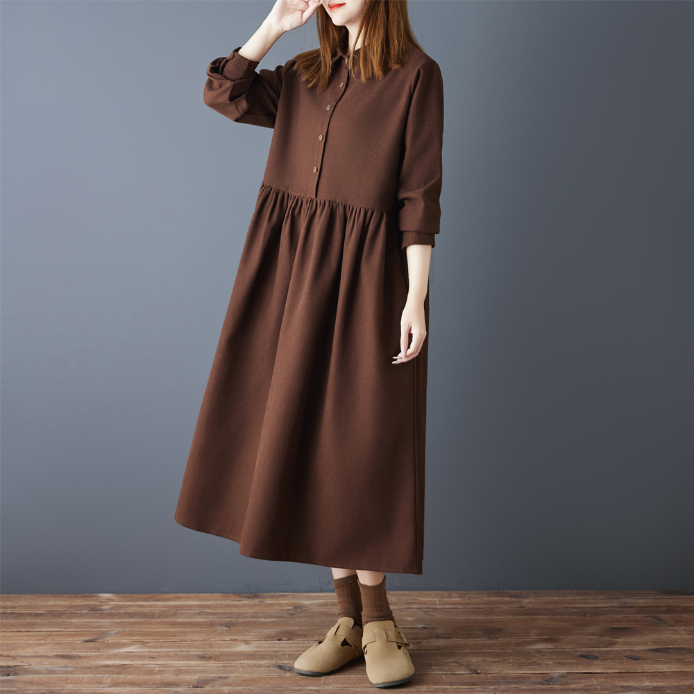 外贸出口秋冬新款韩版大码宽松时尚中长款翻领显瘦长袖连衣裙女