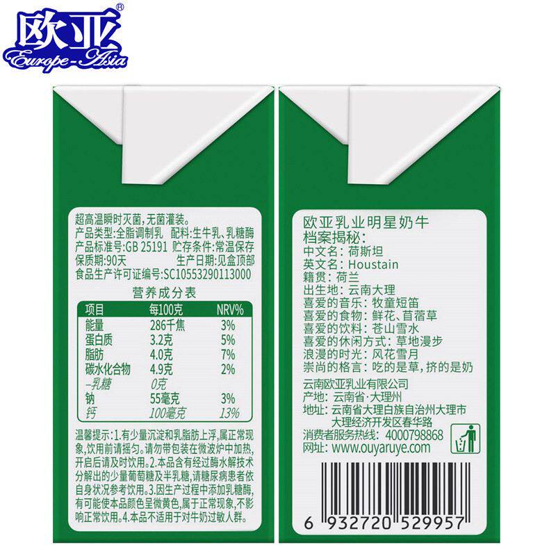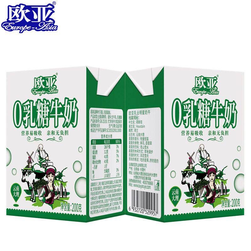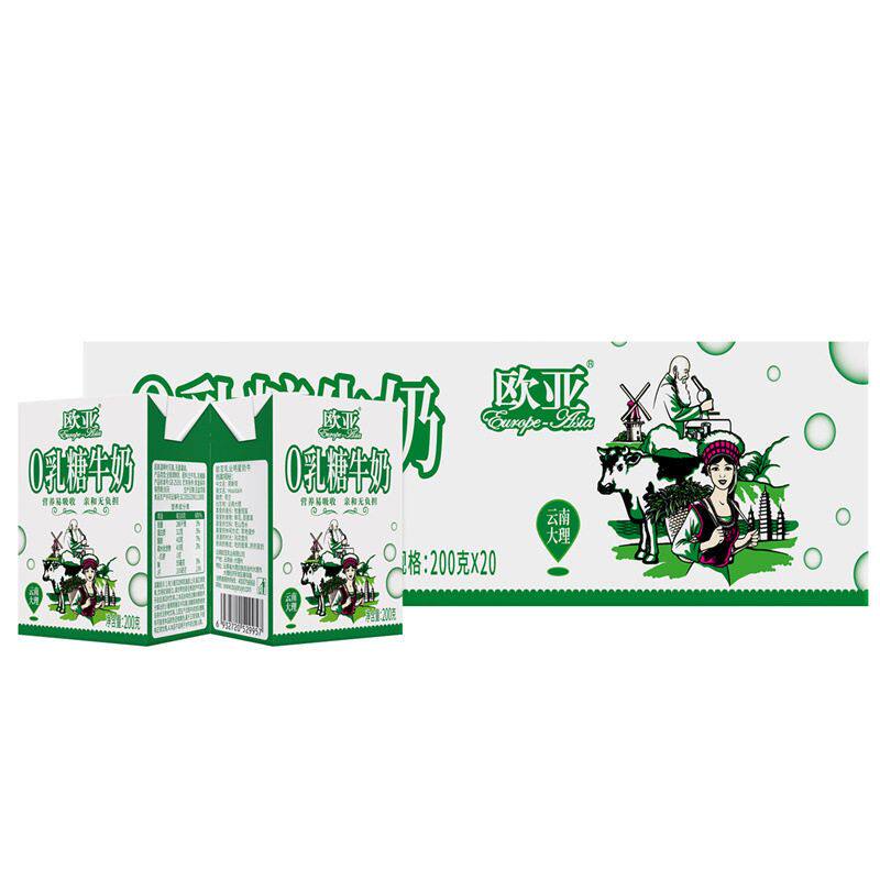 【日期新鲜】大理欧亚高原全脂0乳糖牛奶200g*20盒/箱大理乳制品
