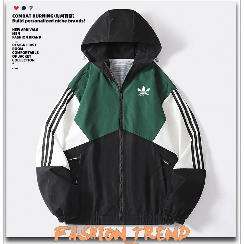 兰瑟姆三叶草2025秋季连帽冲锋衣外套男女三条杠夹克休闲运动风衣