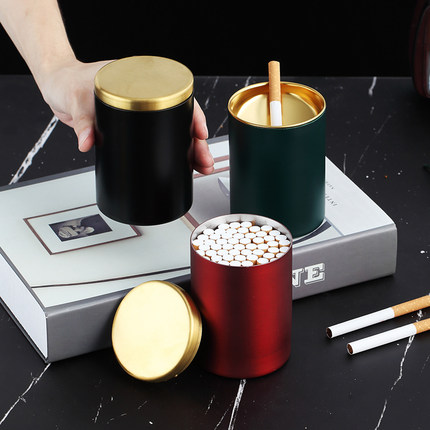 车载烟盒罐不锈钢50支装客厅家用大容量茶叶烟丝密封防水潮烟灰缸