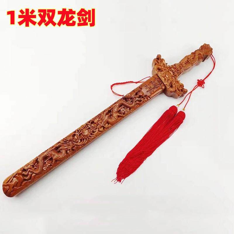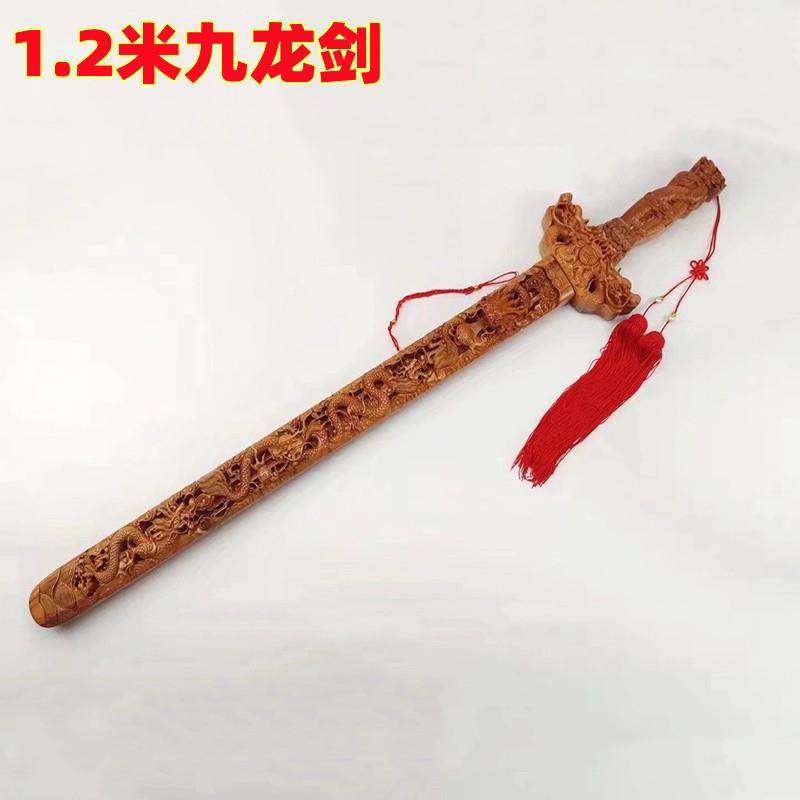 热销厂家货源桃木剑挂件家居摆设镂空双龙九龙剑木雕木质工艺品