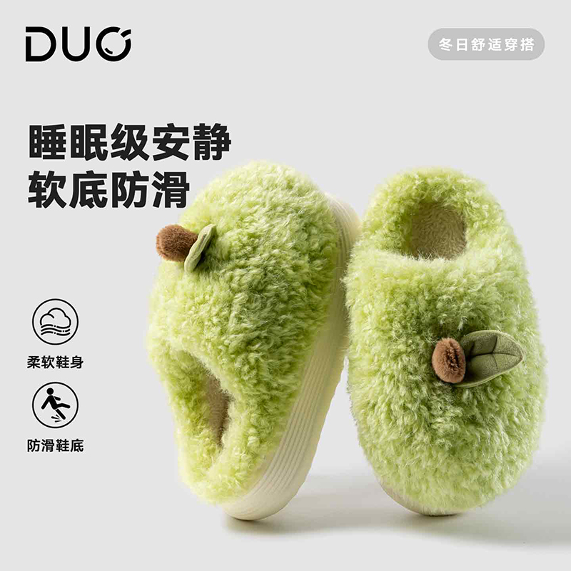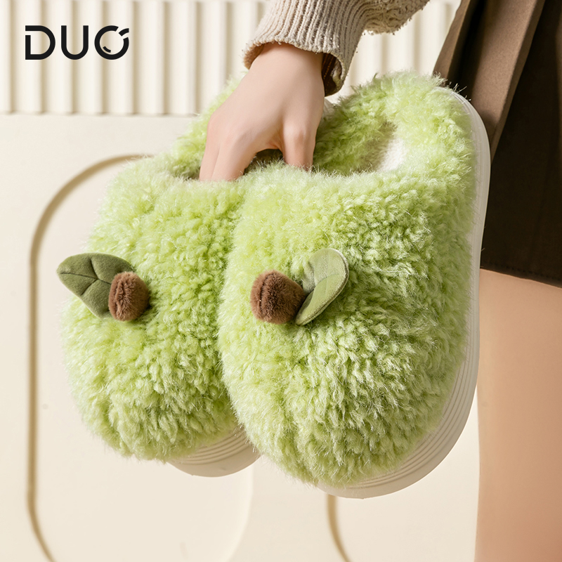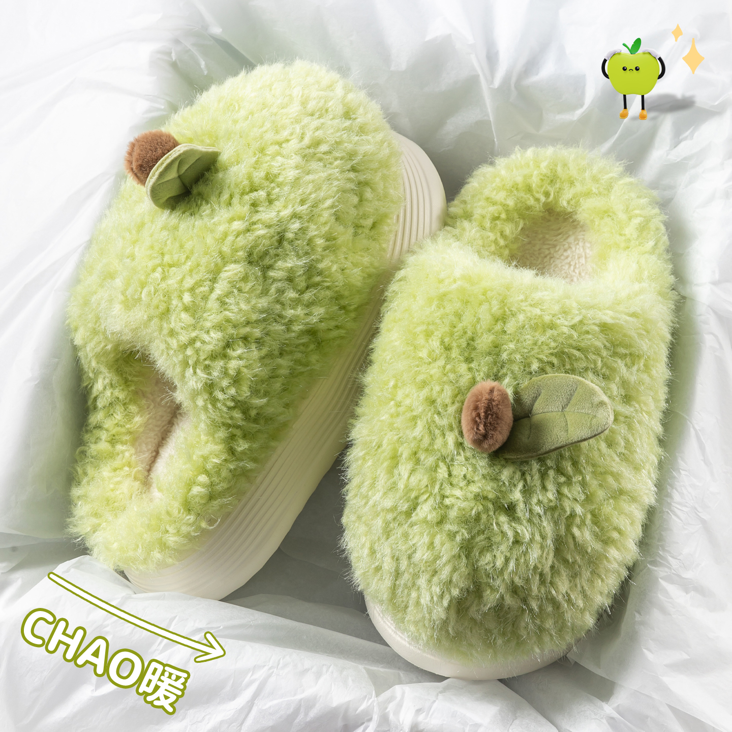 青苹果棉拖鞋女士秋冬季2025新款居家保暖加绒加厚毛绒可爱拖鞋女