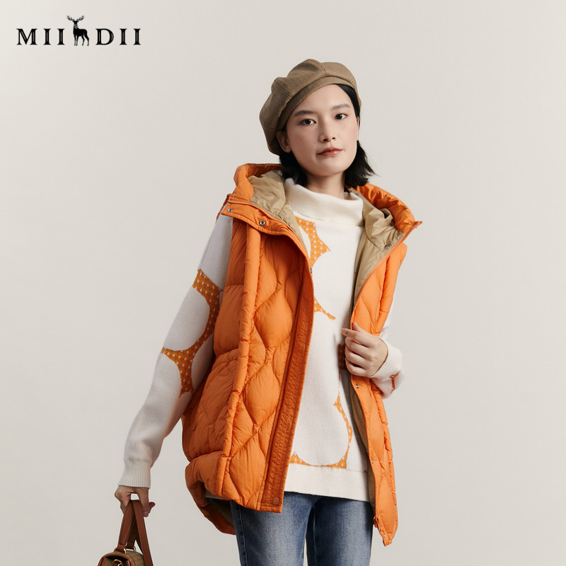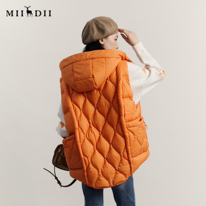 谜底中长款羽绒马甲女2023冬新品时尚连帽百搭鸭绒马夹234MY1567