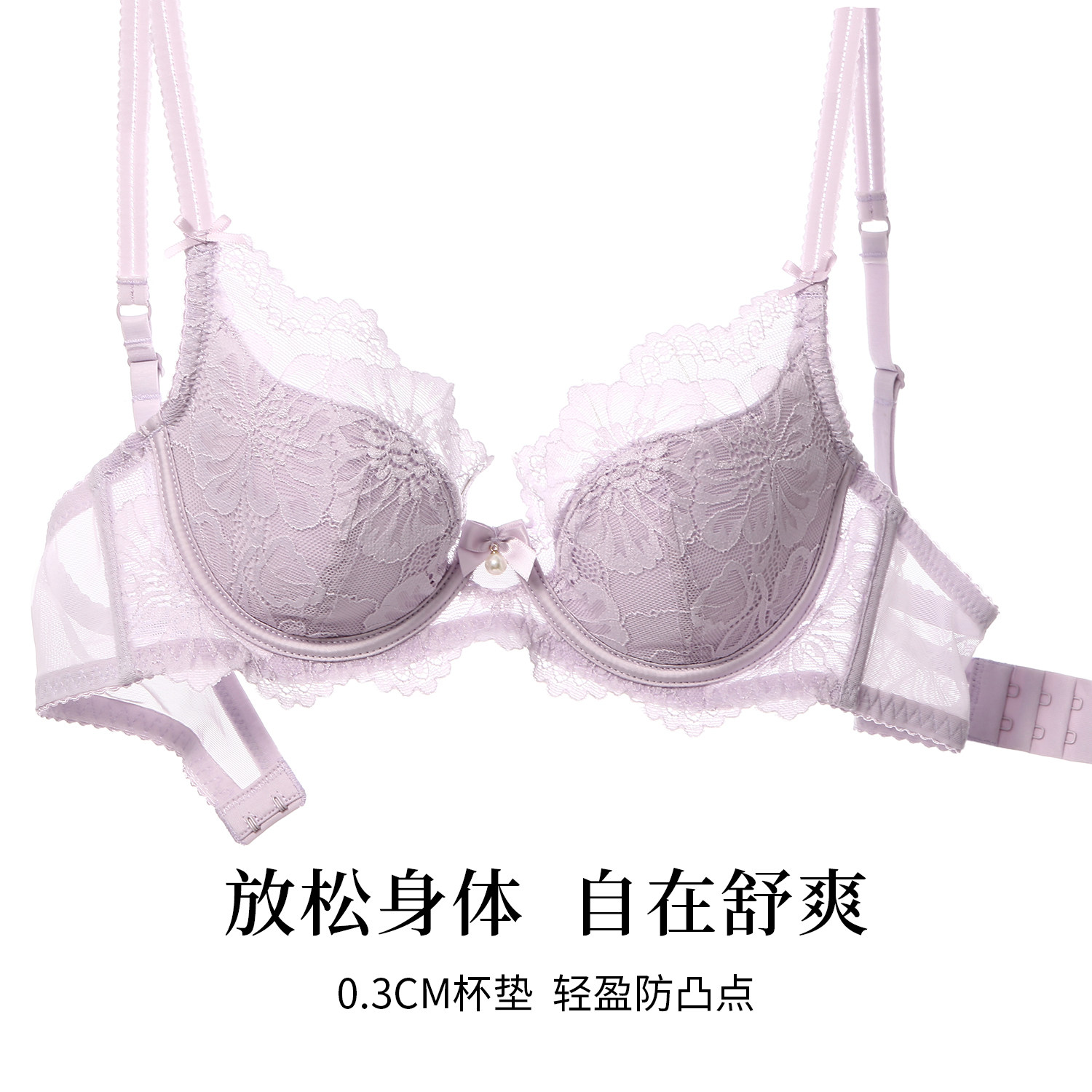 法式蕾丝大胸显小防下垂文胸套装
