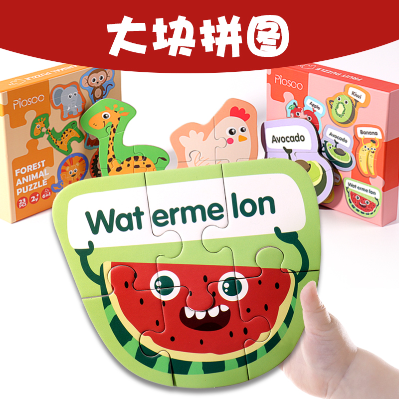 幼儿动物拼图1大块2男女孩宝宝早教益智力启蒙入门级进阶玩具3岁4