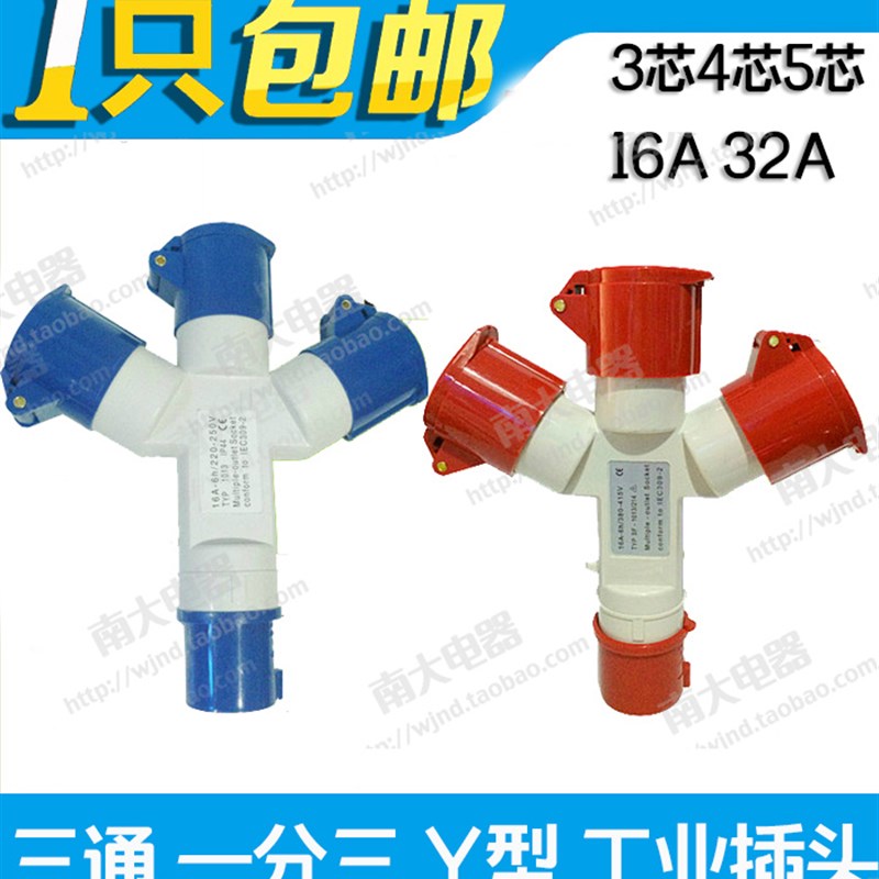 1013/1023 多功能三通一分三Y型工业插头防水插座3芯4芯5芯16A32A