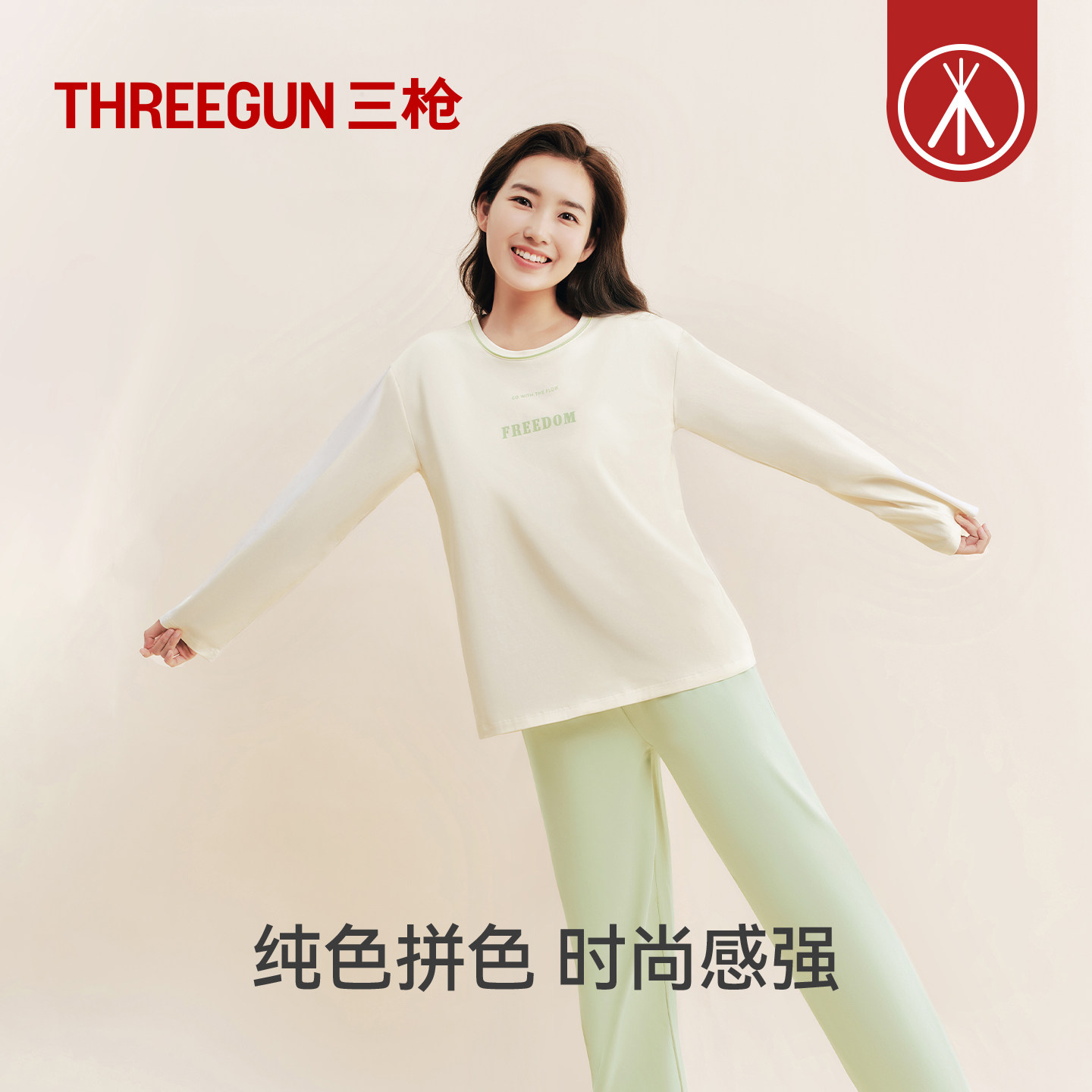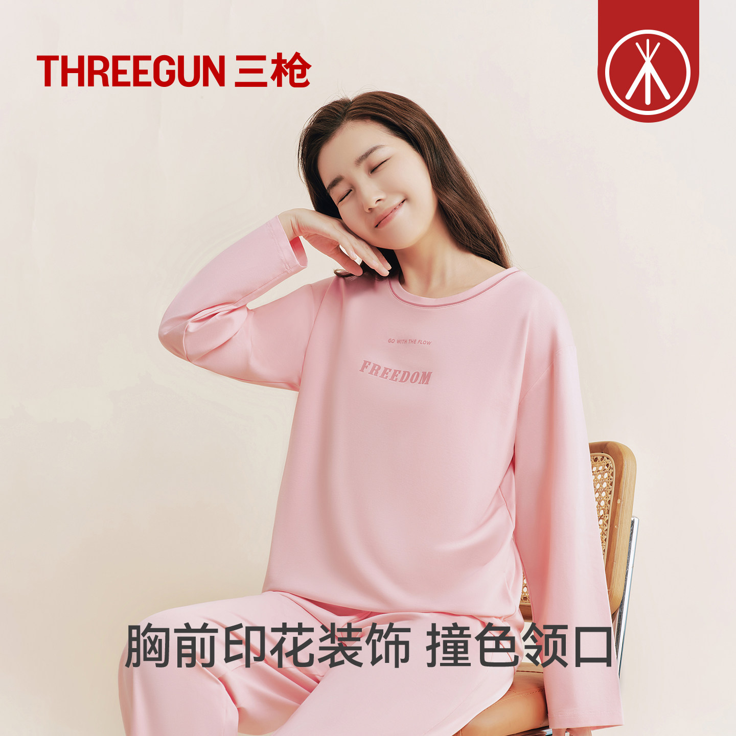 三枪秋冬带胸垫家居服女士可外穿