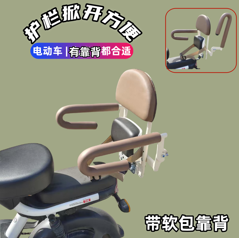新款可折叠电摩车儿童座椅后置安全护栏宝宝防摔围栏可转动掀开