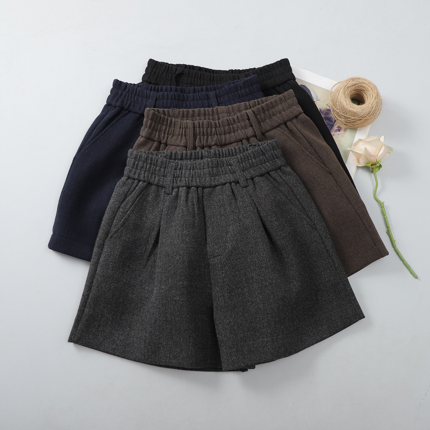 毛呢短裤女外穿冬季呢料纯色