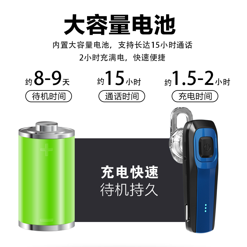 HYUNDAI/现代无线蓝牙耳机单耳商务挂耳式开车通话运动长待机耳塞