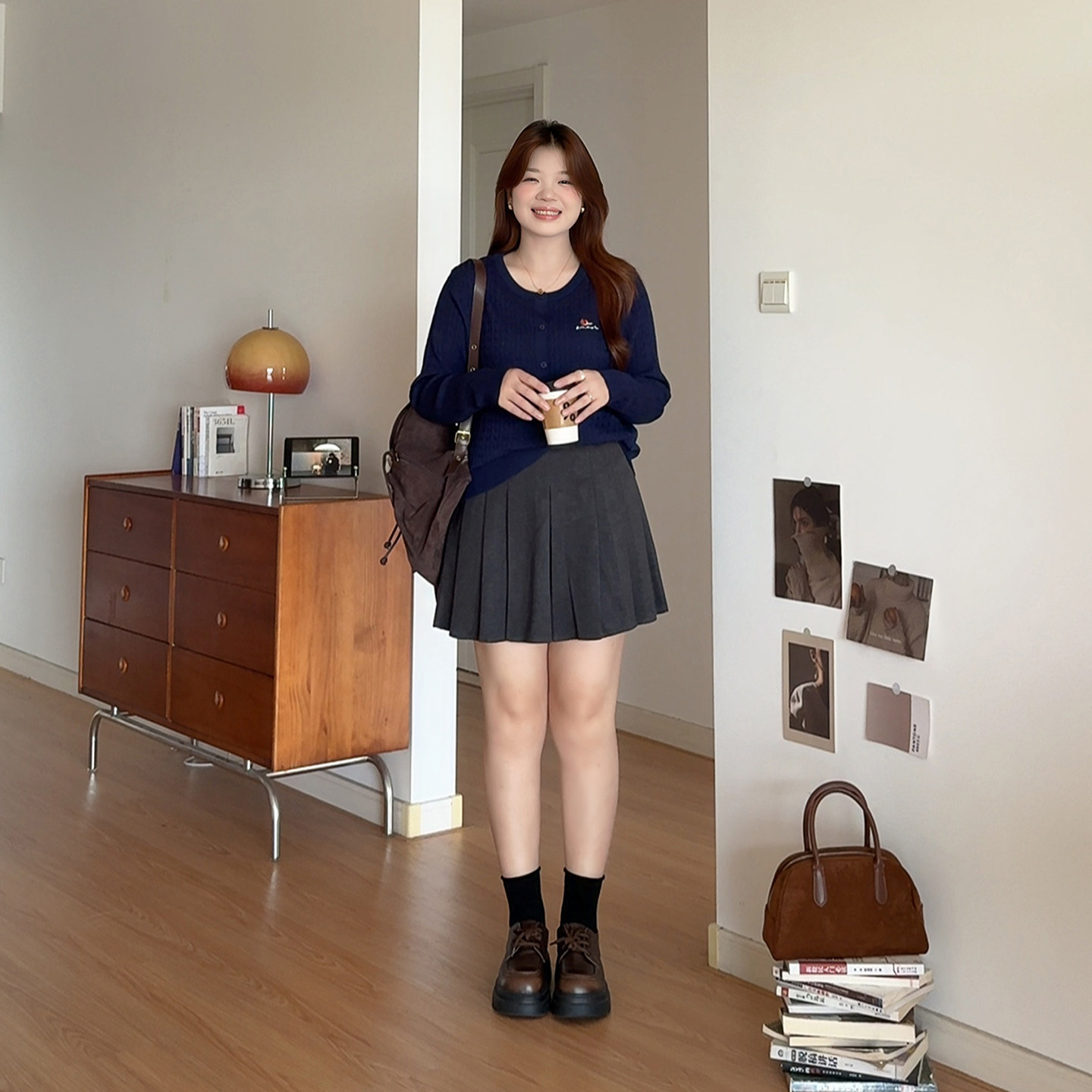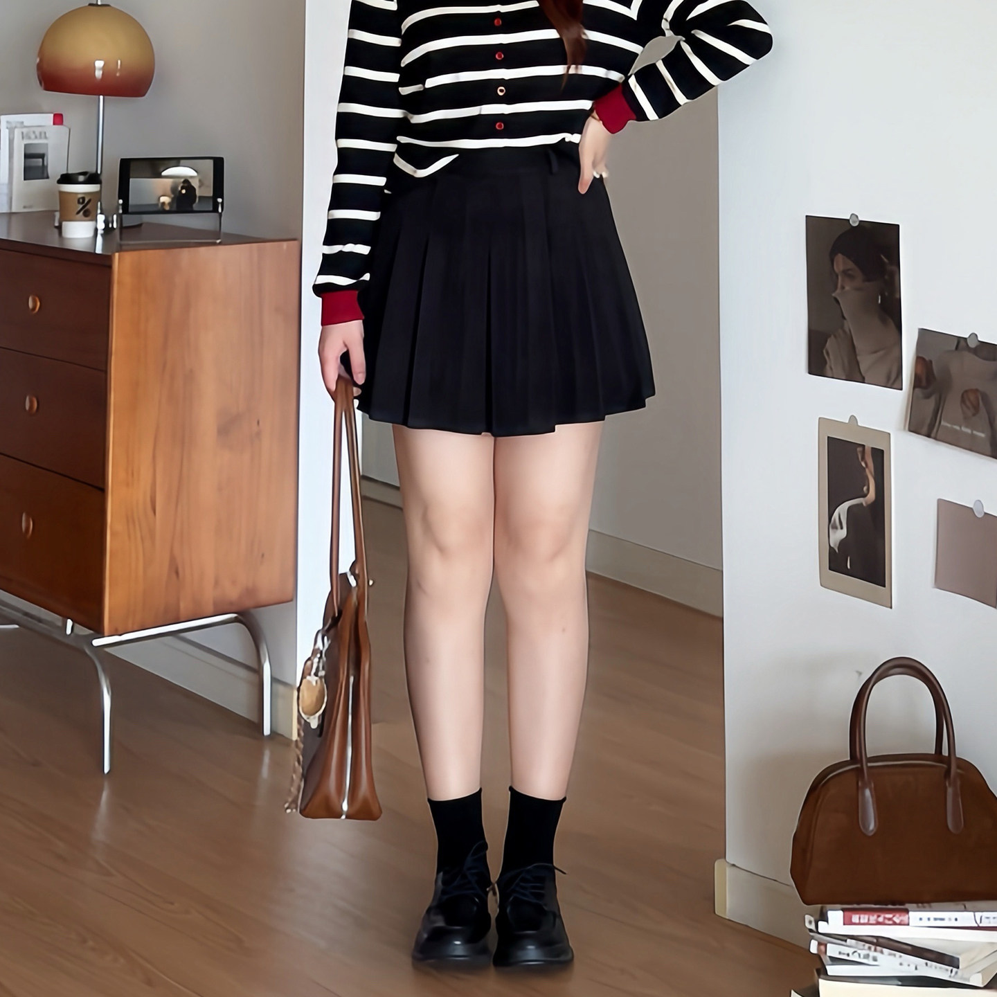 大码胖mm高腰a字毛呢百褶短裙
