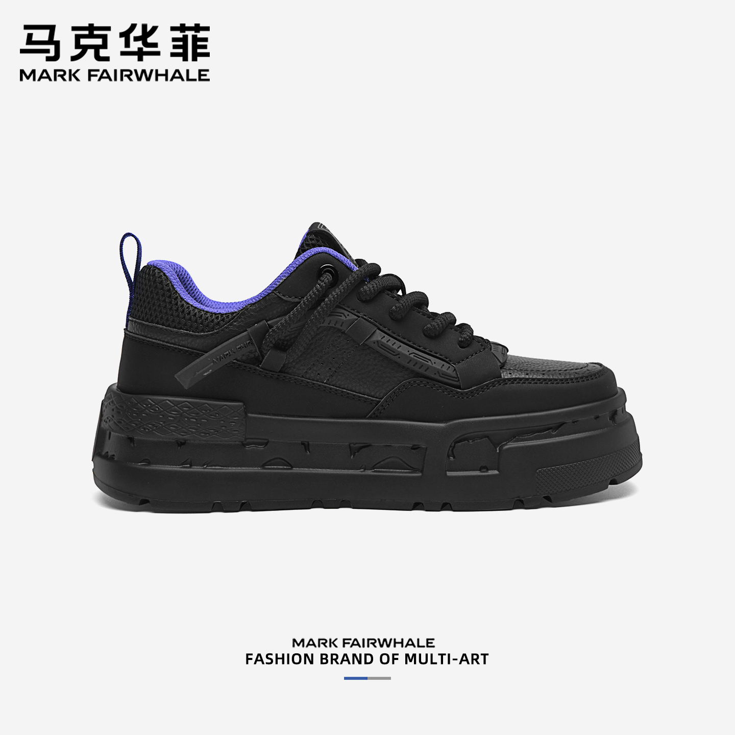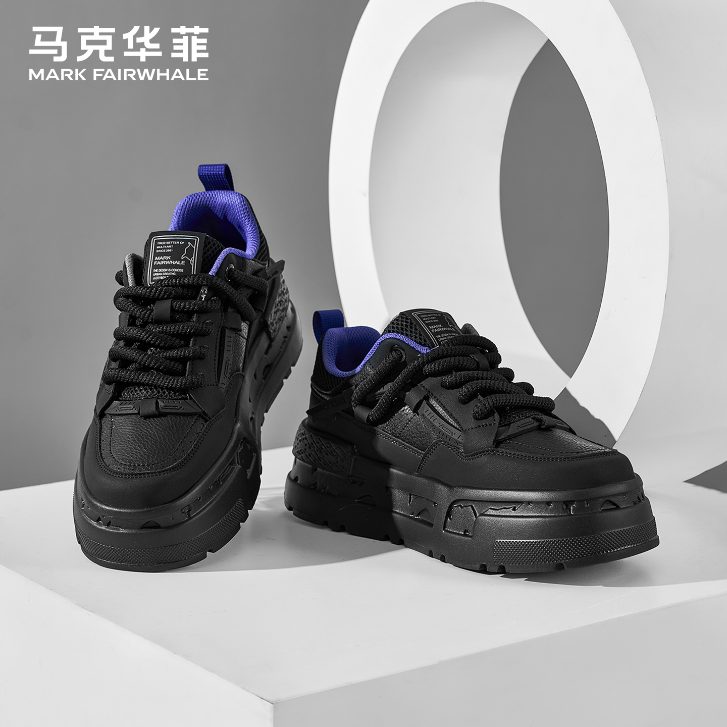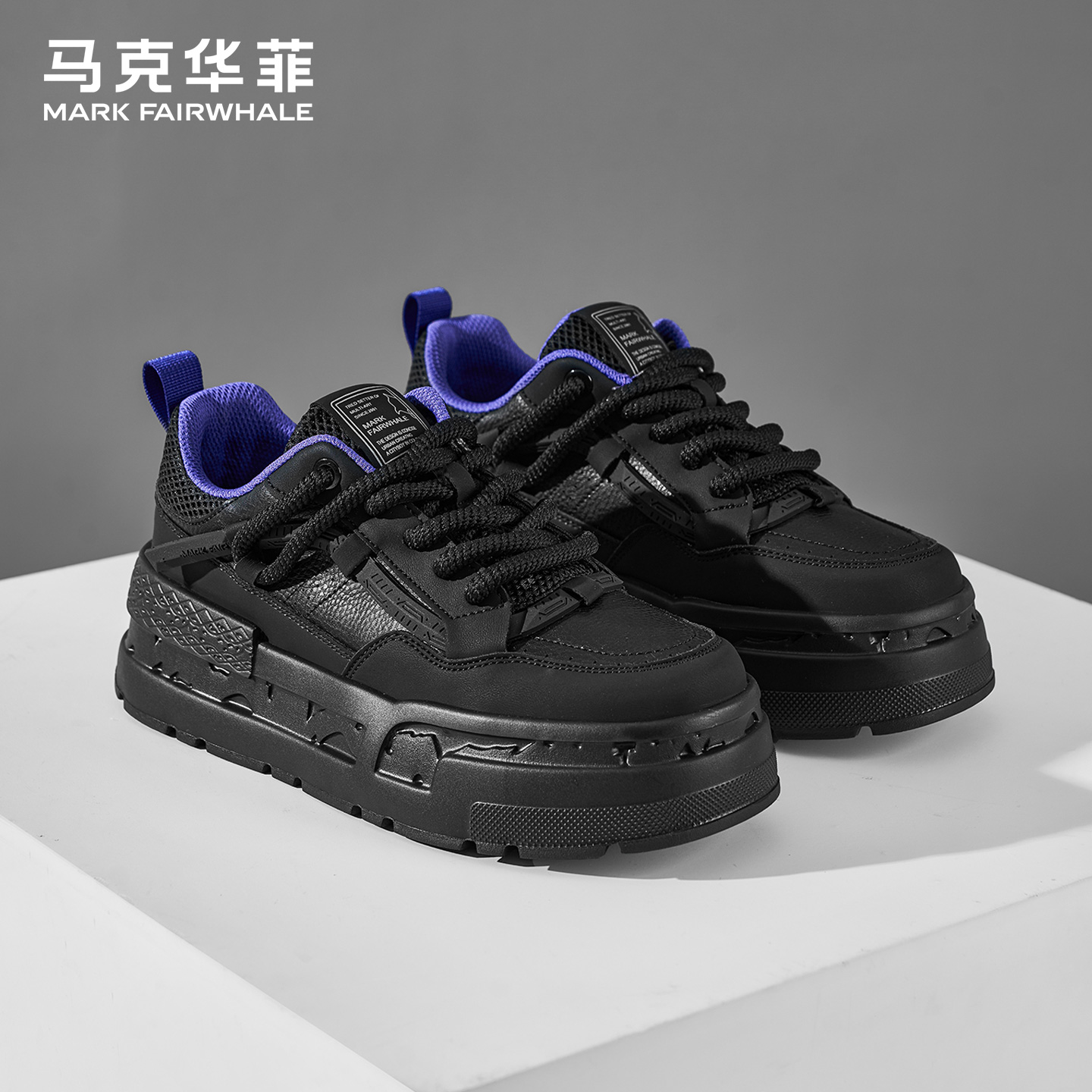马克华菲黑色厚底板鞋男款潮牌运动休闲鞋子男士2025新款增高男鞋