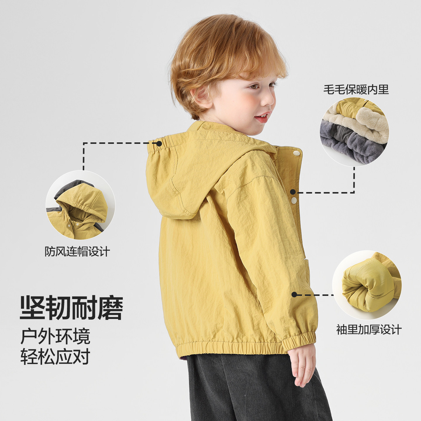 男童加厚加绒外套宝宝棉服春装连帽防水上衣秋冬新款儿童男孩棉衣